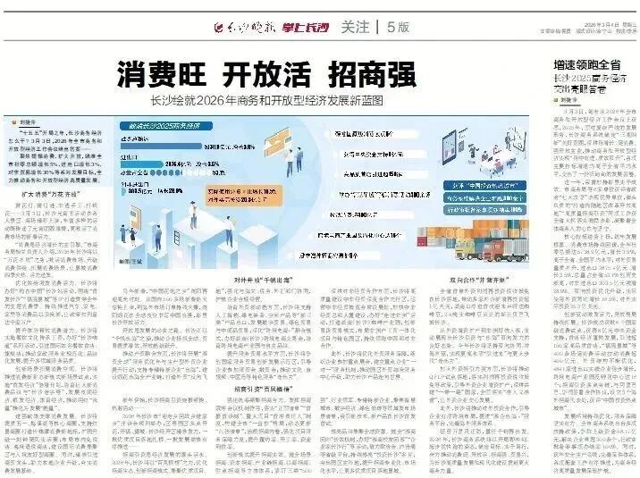 提升服务贸易水平方面,长沙将争创国家服务贸易创新发展示范区,引导企业参加服贸会、数贸会;推动文化、音视频、中医药等特色服务“走出去”。