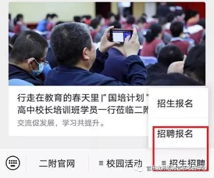 点击下方“湖南师大第二附属中学”微信公众号,并关注,通过“招生招聘”栏目进行报名。联系人:李老师13548754544(微信同号)