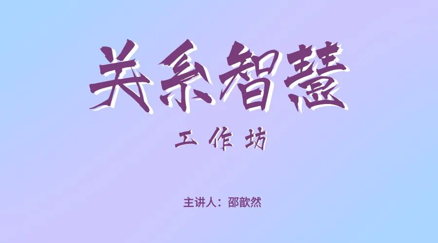 《关系智慧》工作坊时间:
