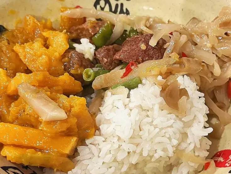 到了中午,一定要尝尝“南岳素斋”里的豆腐。这里的豆腐,不是那种软趴趴的口感,而是外皮煎得焦黄酥脆,咬下去“咔嚓”一声,里面滚烫的豆汁“呲”一下冒出来,混着剁椒的咸鲜,烫得你直吸气又舍不得停。在满是香火气的地方,吃上一口素净又热烈的豆腐,胃里暖烘烘的,人也舒展了。