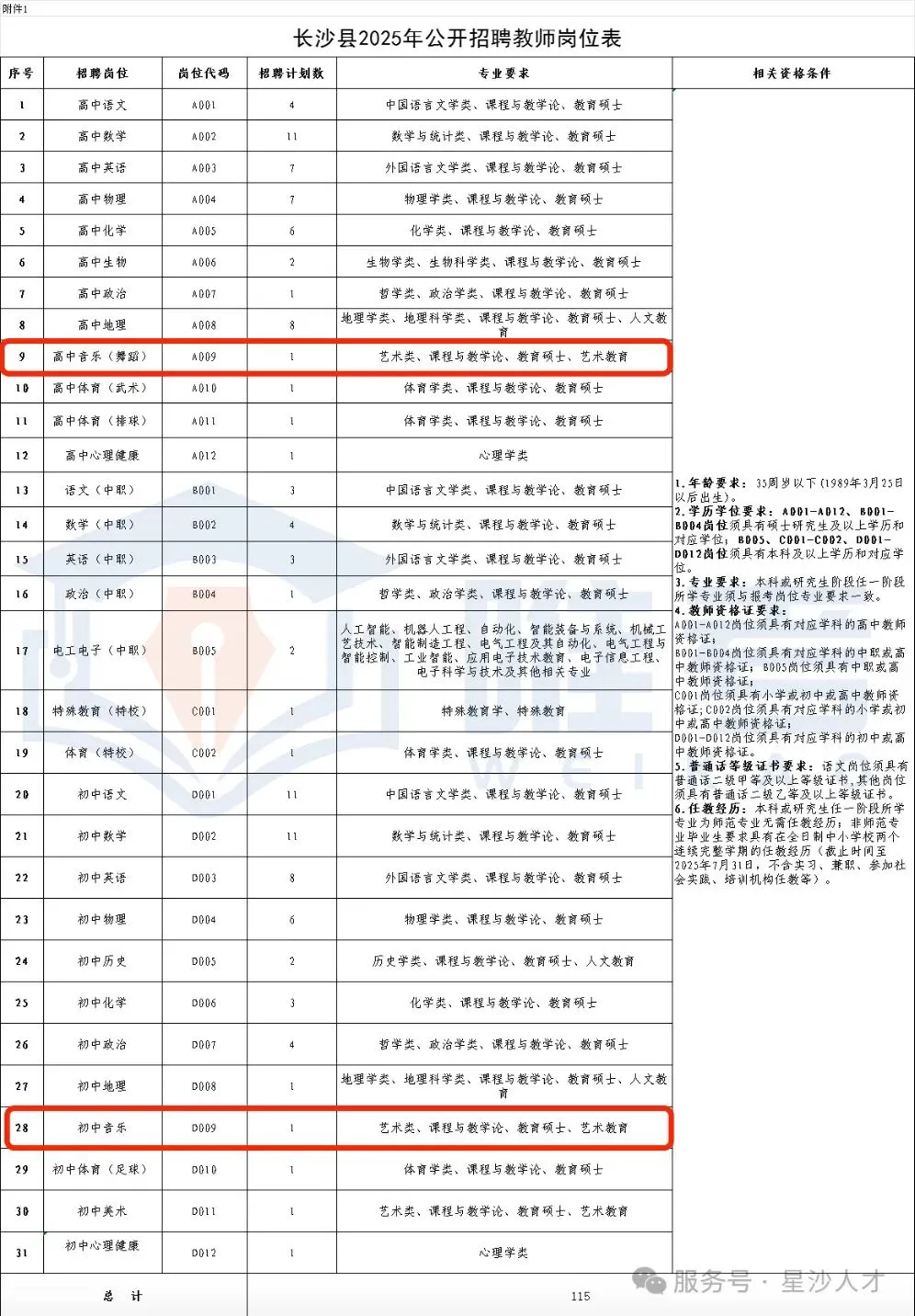3.专业及教师资格证要求:招聘岗位的专业及教师资格证具体要求见《长沙县2025年公开招聘教师岗位表》(附件1)。