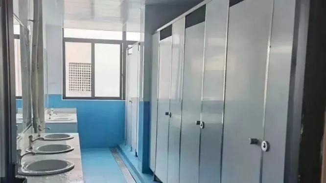 一中新校区也是8人/间,但是现在人少,只住了4-6人,还有2个洗漱台和2个沐浴间。空调热水这些都是标配,寝室里还有插头可以充电,还有洗衣机这些。