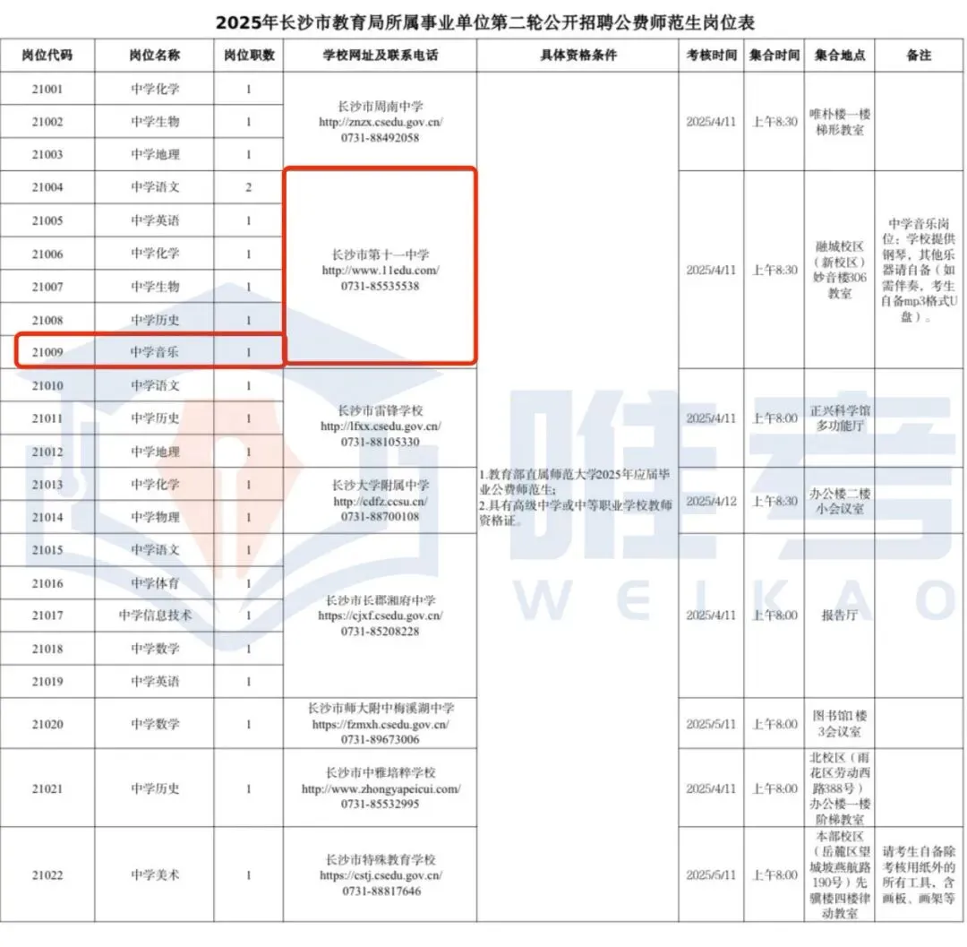 1.《2025年长沙市教育局所属事业单位第二轮公开招聘公费师范生岗位表》