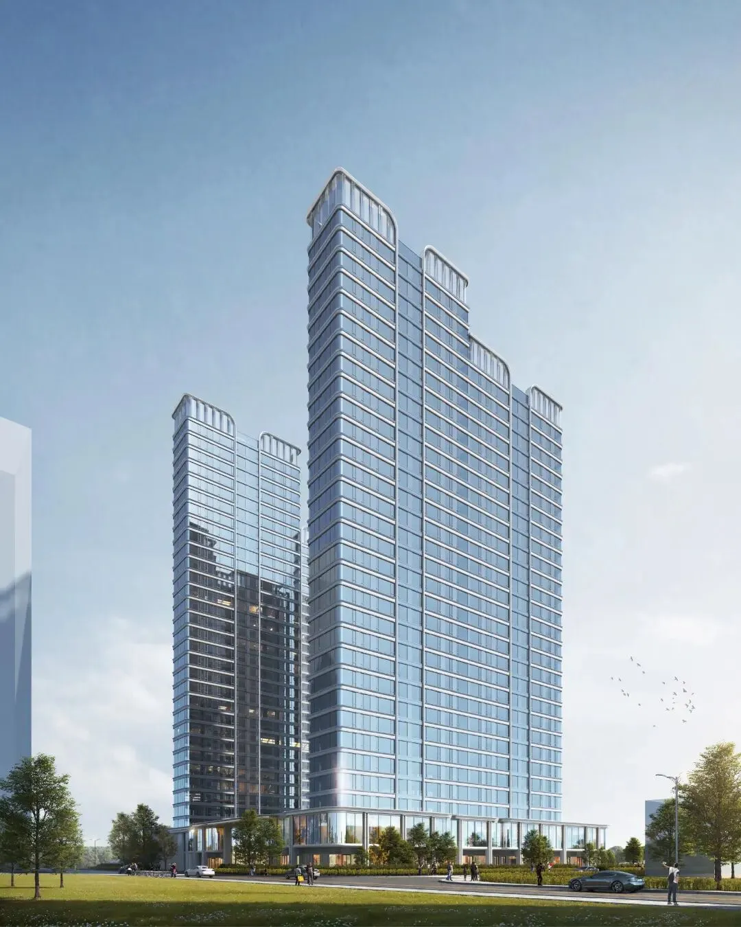 采用公建化外立面,全部为玻璃+铝板设计,不仅颜值很高,隔音效果也不错。其中198m²户型南面玻璃重达约一吨,236㎡户型三面采用三玻两腔玻璃,隔音效果绝绝子。
