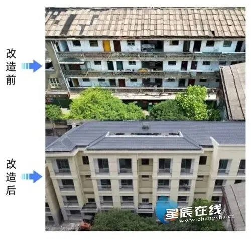 (天心区里仁坡2、3、4号栋危房改造项目改造前后对比。市城市人居环境局供图)