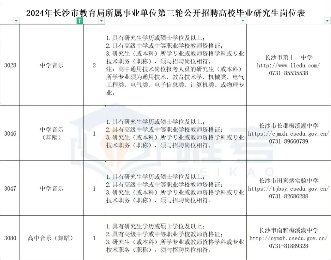 1.《2024年长沙市教育局所属事业单位第三轮公开招聘高校毕业研究生岗位表》