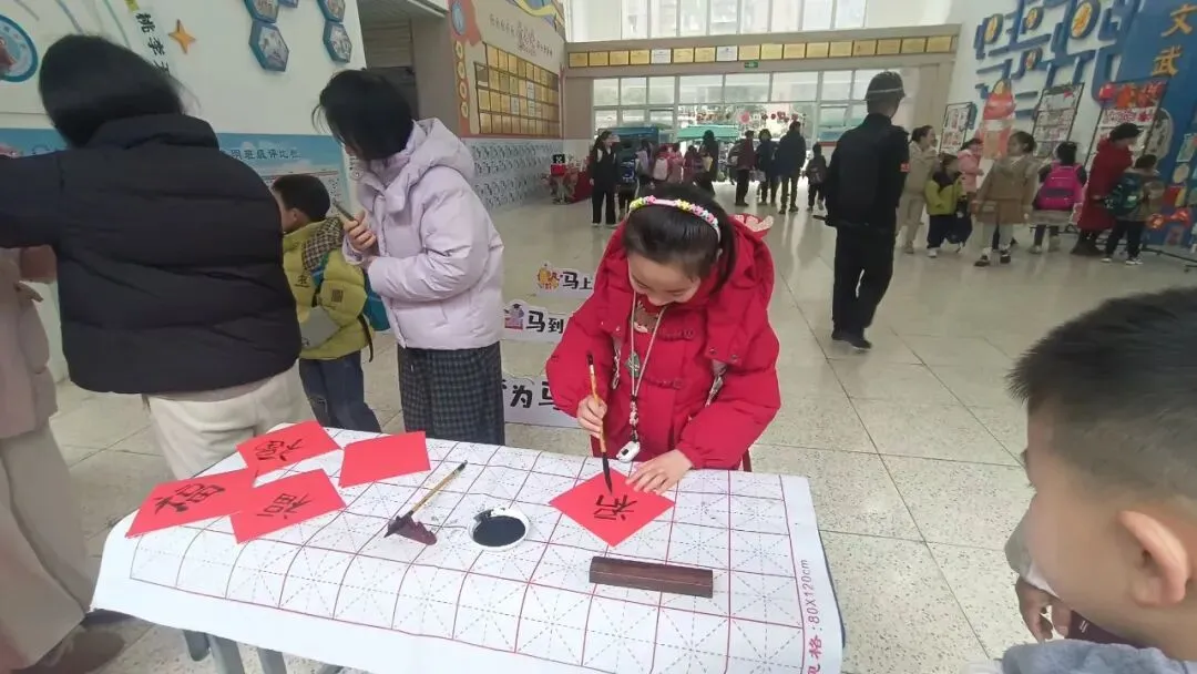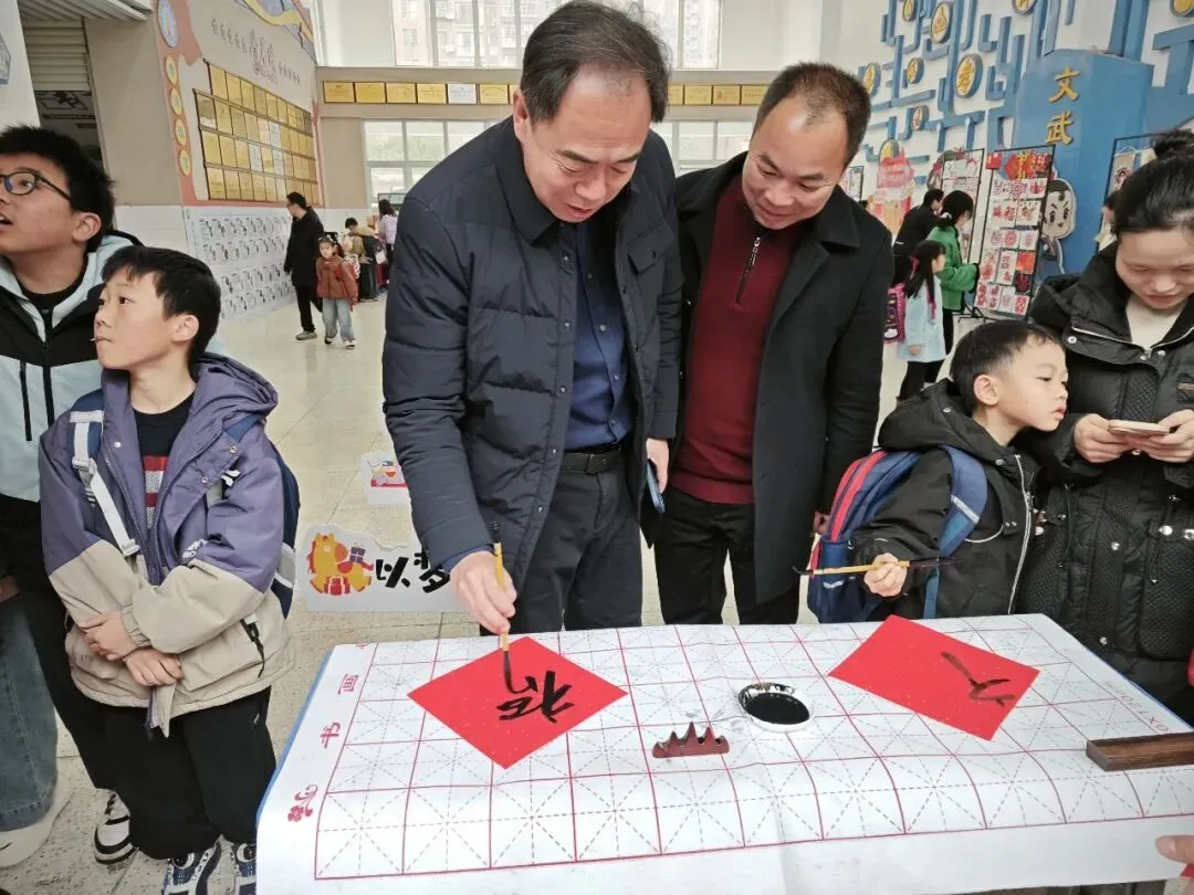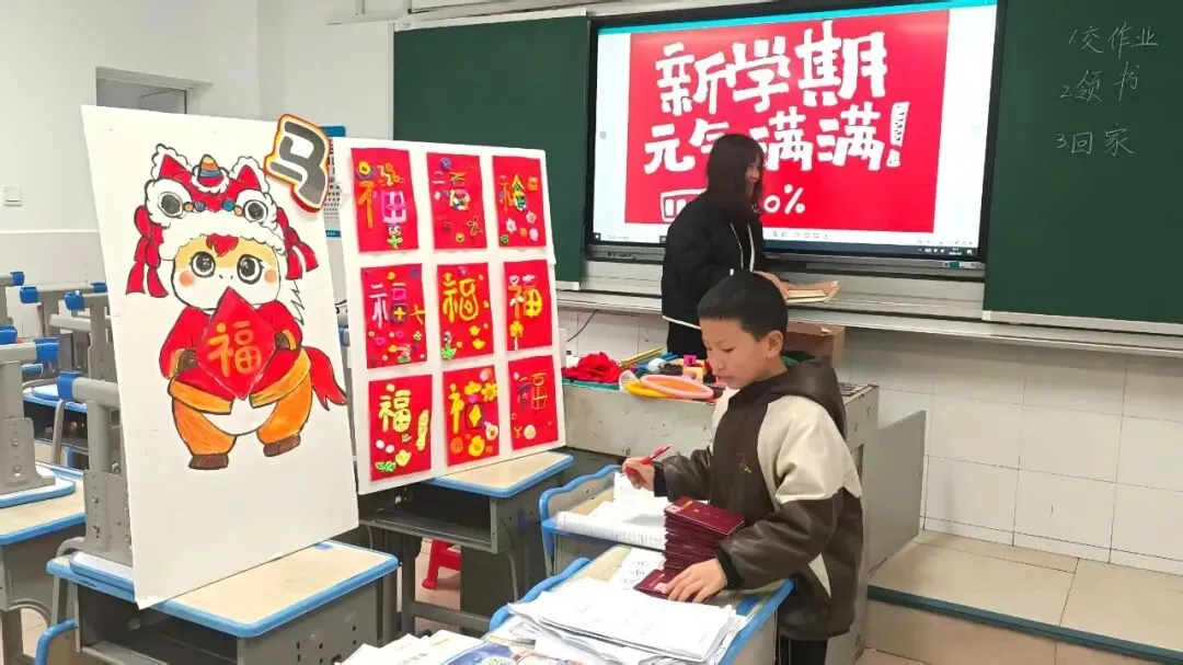 晨光熹微,洒满泉星校园的每个角落。与往年不同,今日迎接学子返校的,除了老师们温暖的笑容与殷切的期盼,还有学校大厅里别开生面的 “寒假实践作品展”。形态各异、色彩斑斓的手工灯笼错落悬挂,将大厅装点得喜气洋洋,微风拂过,灯穗轻摇,似在向返校的师生们轻声道贺 “新学期好”。展台上,琳琅满目的寒假实践作品依次陈列,每一件都凝聚着孩子们假期的巧思与用心,勾勒出他们对传统文化的理解,也定格了假期里的成长与收获。步入各班教室,温馨的迎新氛围扑面而来:黑板上,马年新春的美好祝福跃然纸上,笔墨间皆是期许;课桌前,崭新的课本整齐摆放,书页间藏着新知。老师们化身暖心向导,耐心引导同学们调整作息、收整心情,手把手帮助大家从轻松的 “寒假模式” 平稳切换至专注的 “开学模式”,以饱满的精神状态迎接新学期的全新挑战。“老师,新年好!”“嗨,好久不见!”师生间的相互问候,同学的相互拥抱,充满着浓浓的暖意。田汉教育集团党委书记田丰亲临报到现场,与我校党总支书记一起现场挥毫泼墨,书写大红福字,笔墨浓淡间满是新春祝福,一幅幅福字赠予学子,为校园更添浓浓年味与暖心期许。