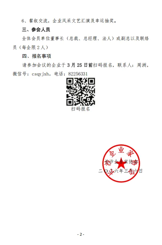 >活动通知 | 长沙企业自己的盛会!欢迎报名参加2026年长沙企业家协会第七届理事(扩大)会议,3月25日截止
