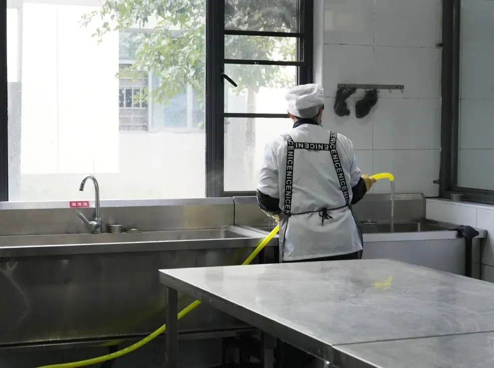 校园各处皆是忙碌身影,生活服务部、食堂等区域同步开展环境整治与设施维护,全方位清洁消杀、及时检修更换设备,以整洁焕新的环境迎接新学期到来。