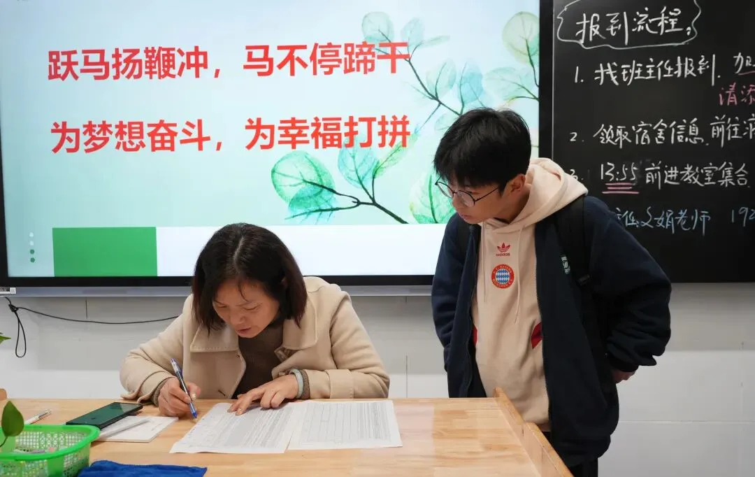 教室里,老师们早已等候多时,一句句暖心的寒暄,一个个亲切的笑容,为学子拂去旅途的疲惫,黑板上的欢迎语、精心布置的班级角落,藏着学校对学子最真挚的期盼。