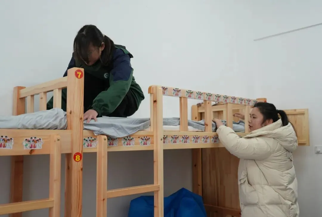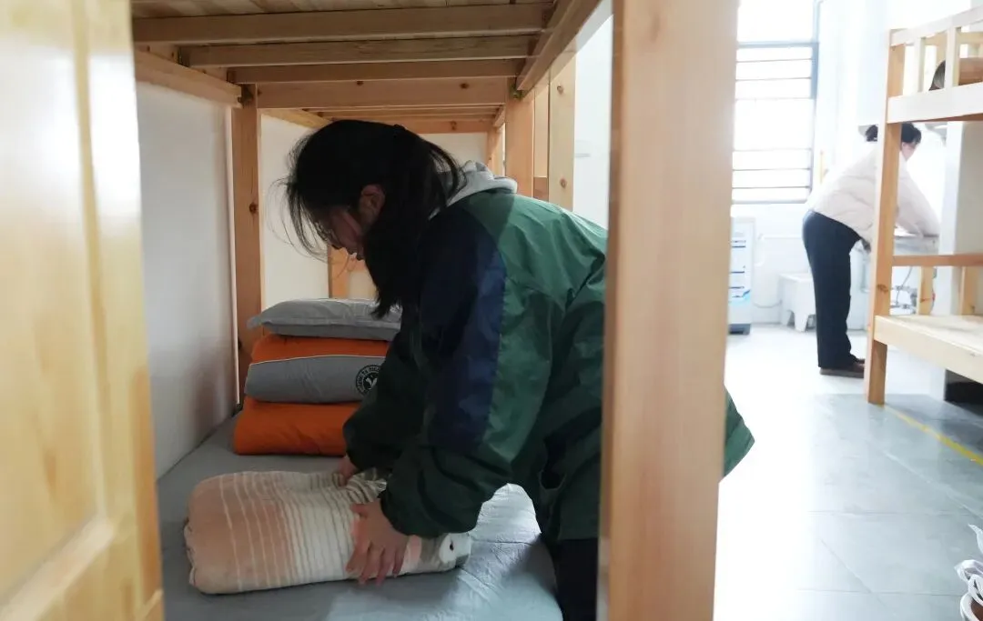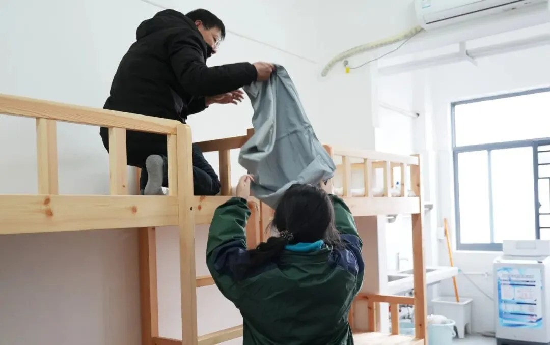 寝室内,家长们与学子一同搬行李、铺床铺、整理内务,忙碌的身影里满是亲情与关爱,宿管老师贴心引导、细致答疑,用暖心服务让宿舍成为学子在校的温暖港湾。