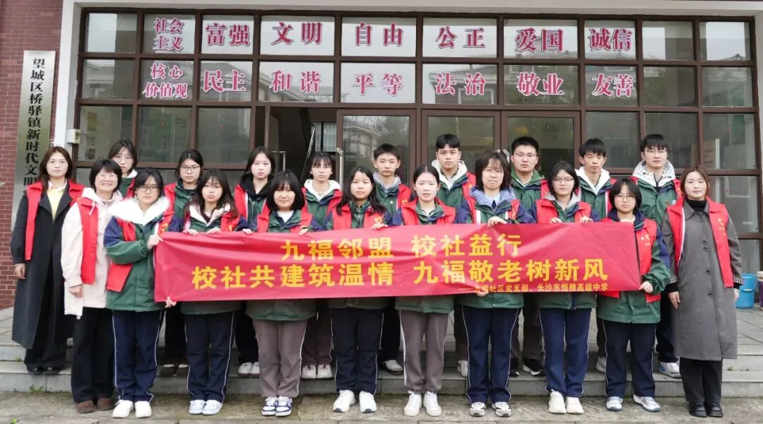 校园外,恒雅党员教师带领团员学子化身学雷锋志愿者,走进桥驿镇九福社区开展校社共建志愿服务活动,将雷锋精神融入社区实践的点滴之中。