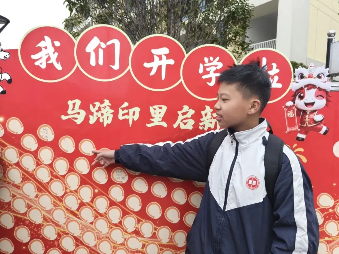 校门口暖意融融,老师们早早迎候,志愿者热情引导,重逢的喜悦萦绕校园,迎新氛围直接拉满!同学们互道“马到成功”“龙马精神”等马年吉言,温馨的祝福互动后,收获第一枚【吉言骏】贴纸,正式开启集“骏”之旅。