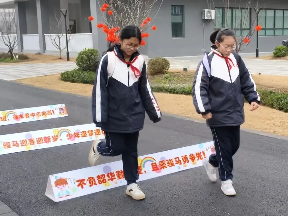 初中部前的跨栏挑战直接点燃全场热情!同学们摩拳擦掌、跃跃欲试,个个化身“小骏马”,昂首挺胸跨过栏杆。这一跃,是对新学期的勇敢期许,更是迎难而上的小决心!跨过跨栏,收获最后一枚【奋进骏】贴纸,五枚“骏”贴集齐,汇聚起新学期的美好力量。