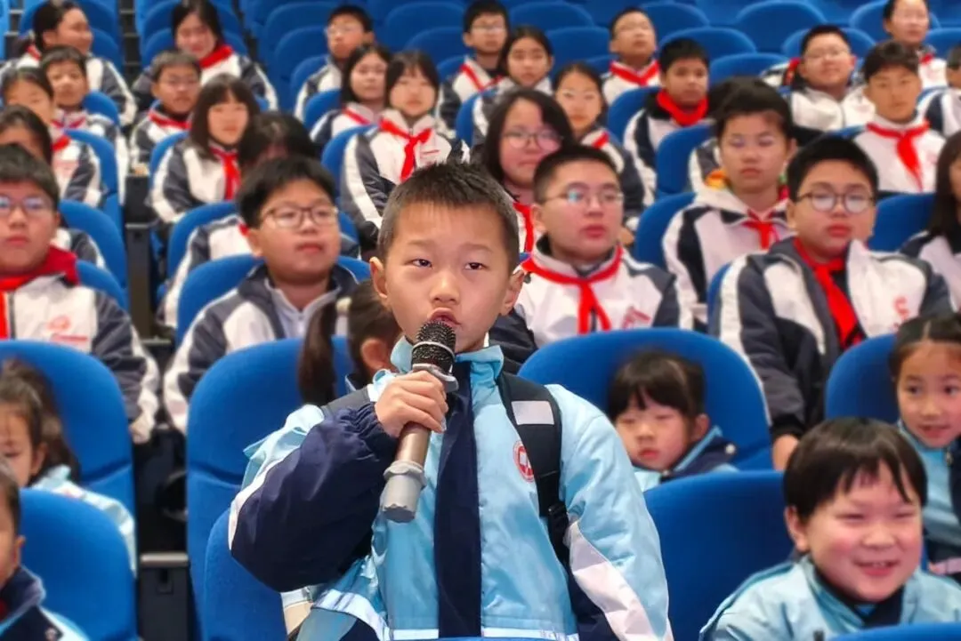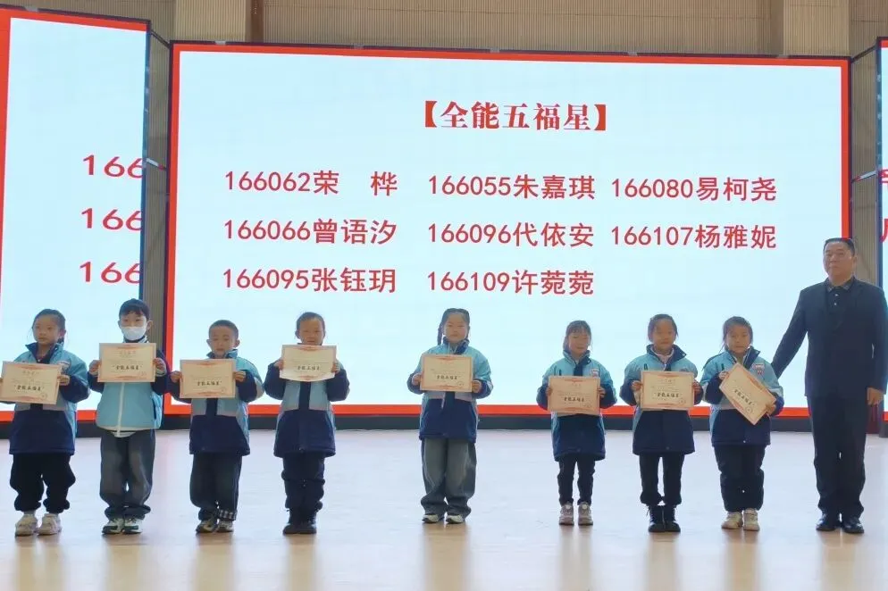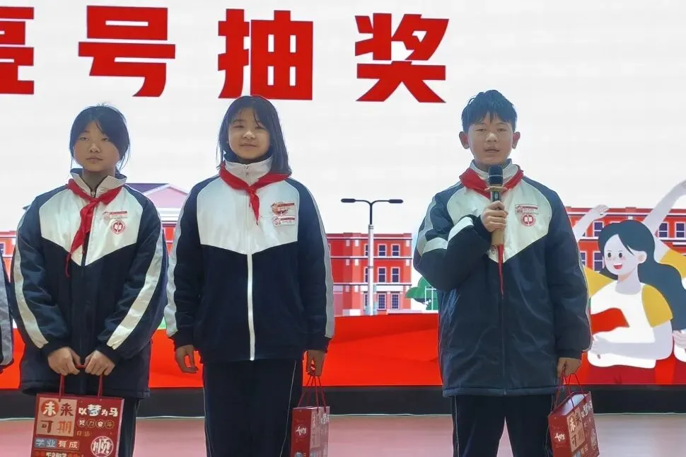 趣味十足的亮号抽奖环节将典礼氛围推向高潮。校领导以抽盲盒的形式,从小一、初一两个年级各随机抽取5个“雷小锋”编号,并送上心意满满的新学期启航礼。一个个专属的“雷小锋”编号,是身份的象征,更是一份独属于少年的荣光与责任。获奖的“雷小锋”们依次登台领奖,自信响亮地说出新学期目标,言语间满是对未来的憧憬与期许,展现出昂扬向上的青春朝气。