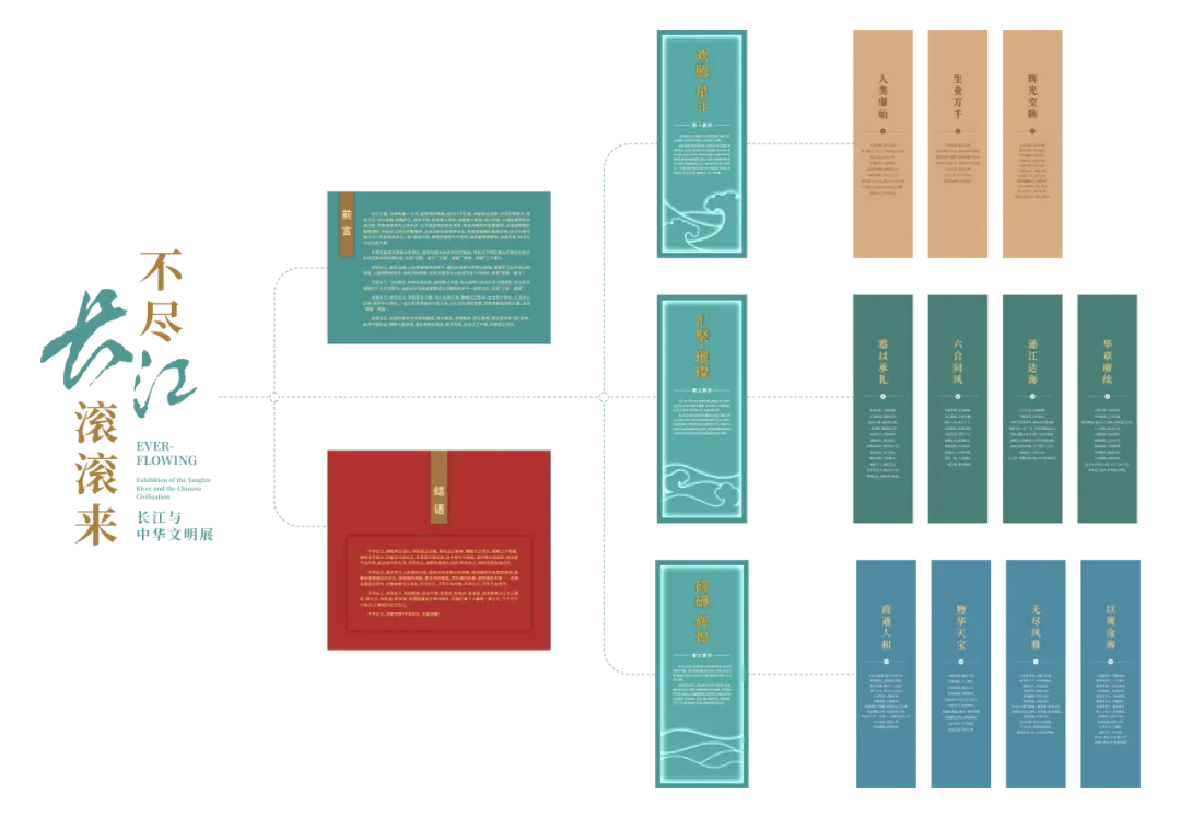 最终展览框架分成“欢腾 星斗”“汇聚 璀璨”“磅礴 辉煌”3个单元,11个章节,实现了自然地理与文明发展的结合。