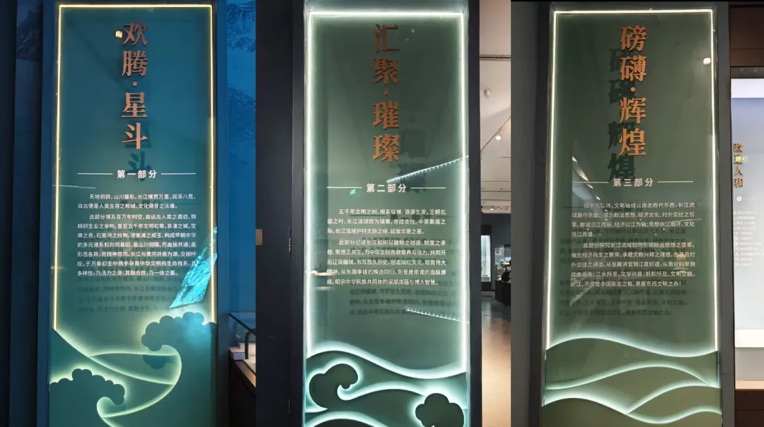 比如三个单元的标题采用双重身份,前半部分体现自然长江的发展脉络,后半部分用文明来表述,在叙述方式上更广义。另外,我们把长江作为舞台,让文物讲文明演变,呈现中华文明突出的连续性、创新性、统一性、包容性、和平性。
