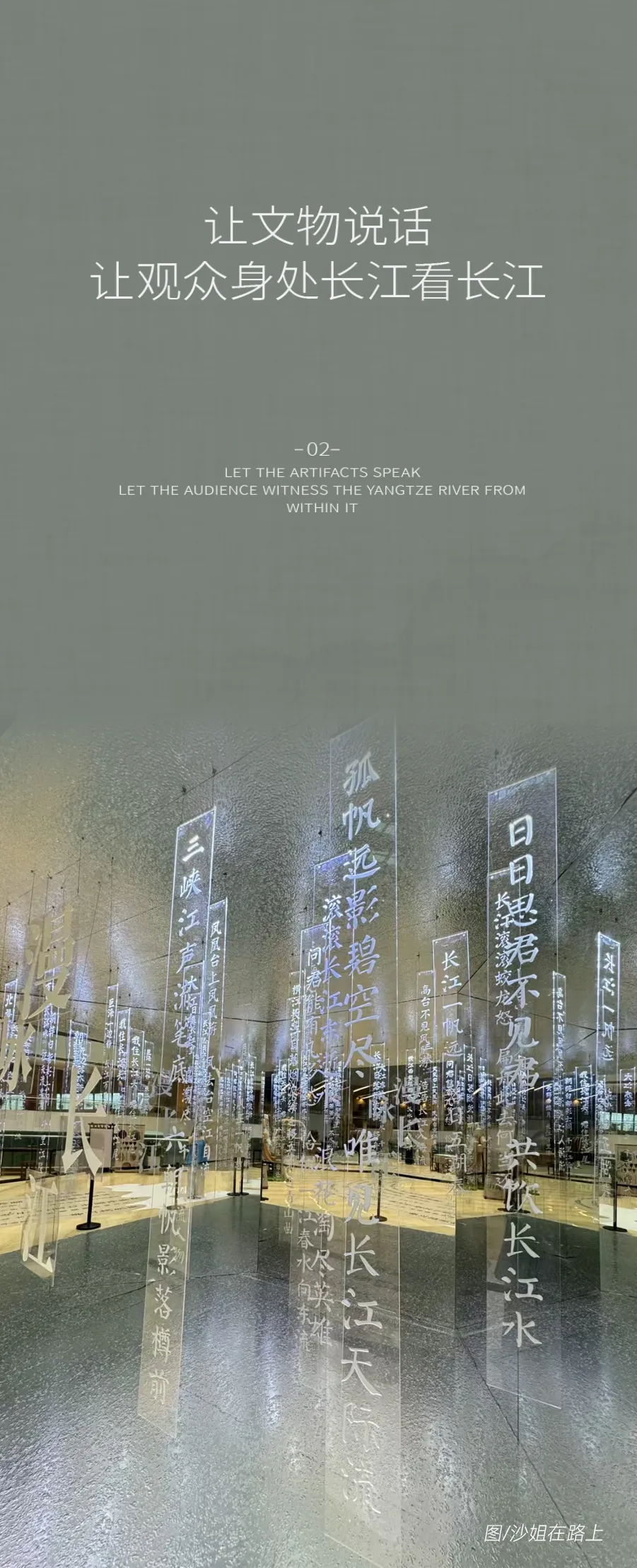 展览有很多文学性表达,比如利用中庭空间让观众溯流而上,序厅选取百首历代吟咏长江的诗词打造艺术空间,这样诗意化的表达,是基于怎样的思考?