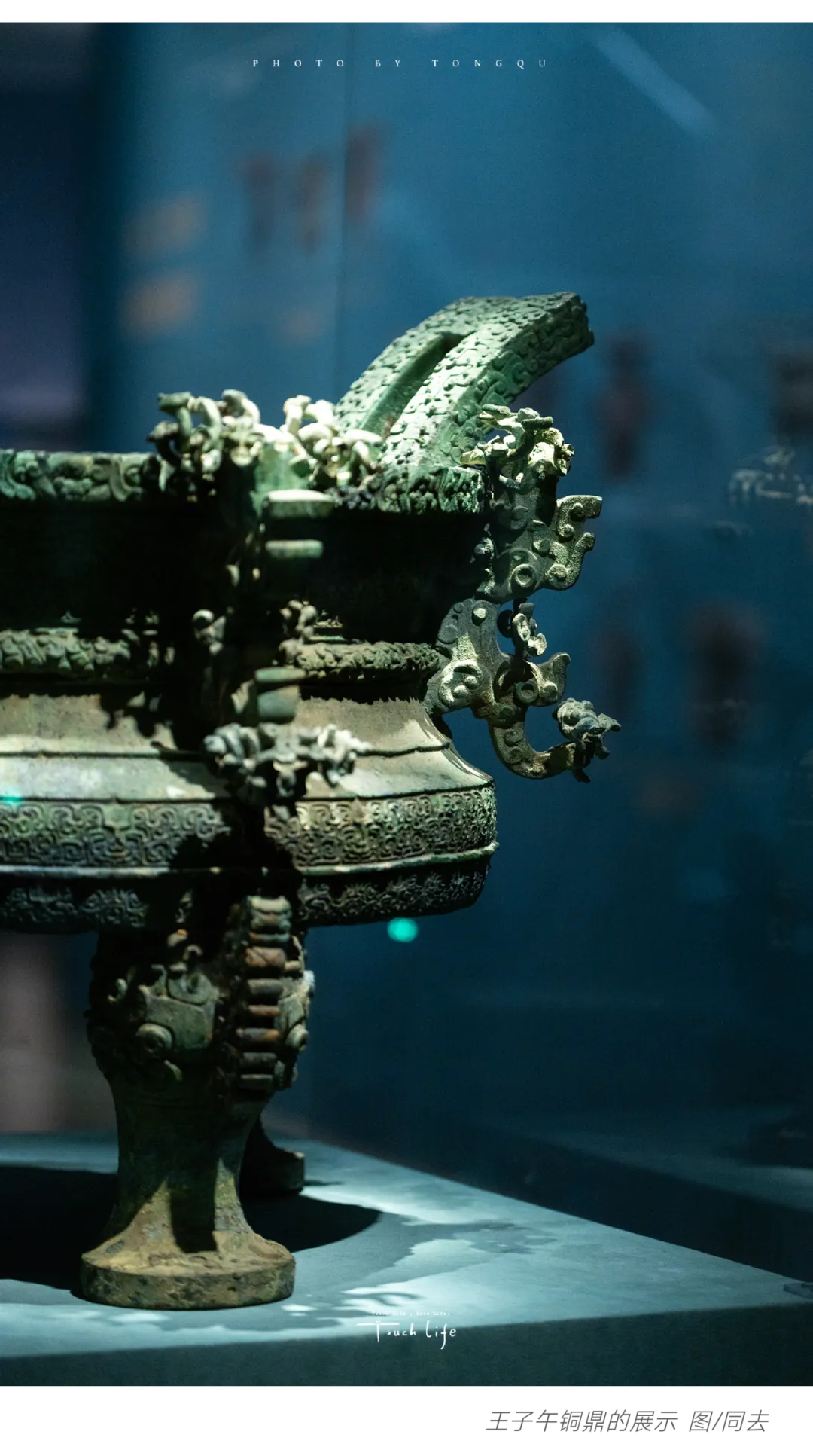 比如长江流域的青铜器,可以很好地展现长江联结和融合的力量。青铜文化从北方发展到南方,经长江流域吸收消化并进行创新。王子午铜鼎便是典型代表,也是青铜板块的明星展品。鼎是中原礼制的象征,王子午铜鼎强劲有力的鼎足延续了中原风格;束腰鼎腹、鼎耳以周身纹饰,则显示出楚地风格。这种风格在春秋战国时期的长江上、下游产生了重要影响,在滇黔、吴越之地的器物上都有反映。