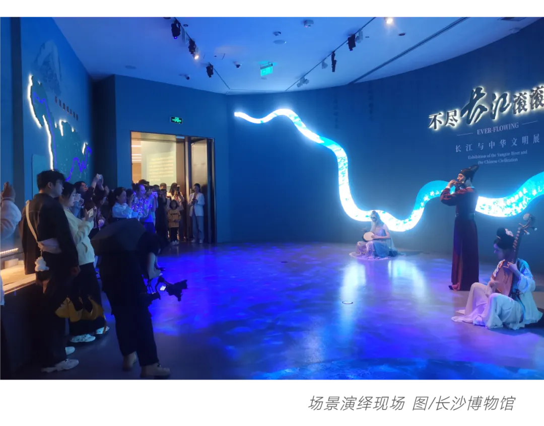我们联合长沙当地歌舞剧院,节假日和周末在大厅里开展了10场场景演绎。演出围绕稻作文明、青铜文明、玉器、陶瓷等主题,展示生产生活故事。