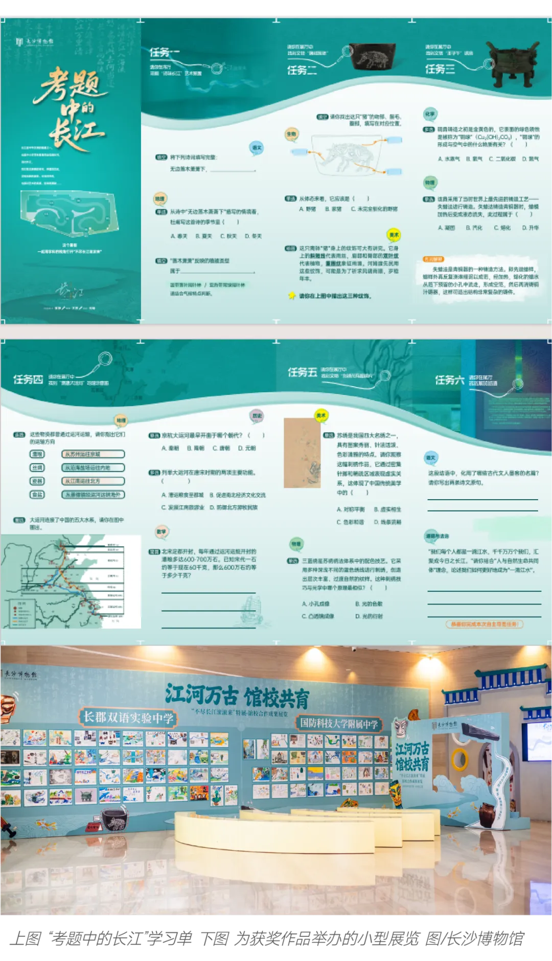 馆校合作方面,我们设计了“考题中的长江”研学课,让学生寻找与课本对应的文物。在暑期还邀请中小学组织学生看展,发起了“我心目中的长江”作品征集互动,学生通过绘画、写诗、摄影表达对长江的理解和自己与长江的故事。我们还为获奖作品举办了小型展览。