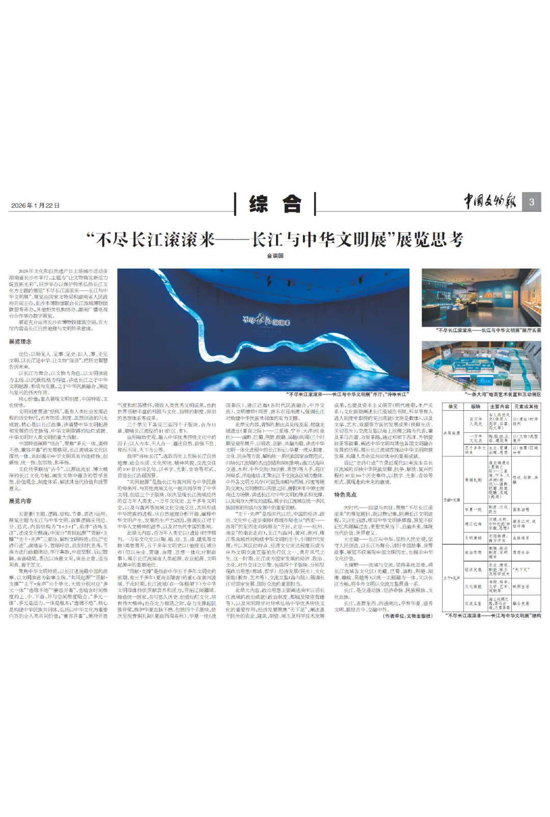 我们还可以将社教活动等内容进行转化和深化。长江是永恒的主题,她的故事可以一直讲述,形成序列体系,也许多年后又是一个长江主题的大展。最近我们正与中国文物报合作,将专家讲座、展览展评等成体系刊发,进行归纳总结。