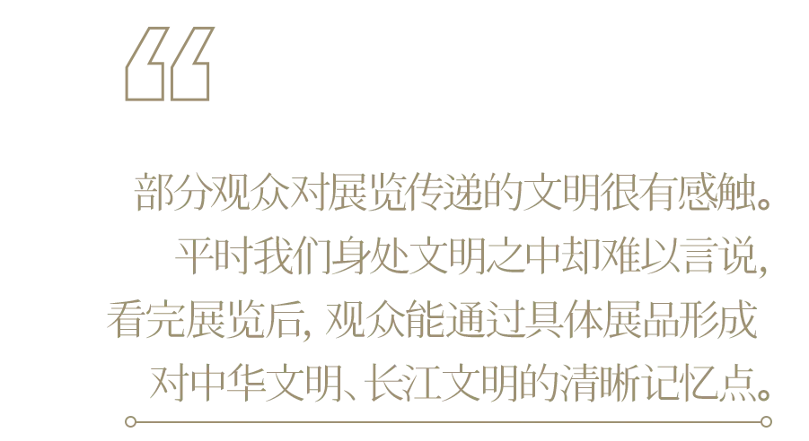 据我们了解,传统长江展览,多对某一主题进行深入展示,比如聚焦青铜器、玉器。而我们的展览不仅仅讲物,还注重挖掘“物”在文明进程中的坐标,也就是“文明的刻度”。