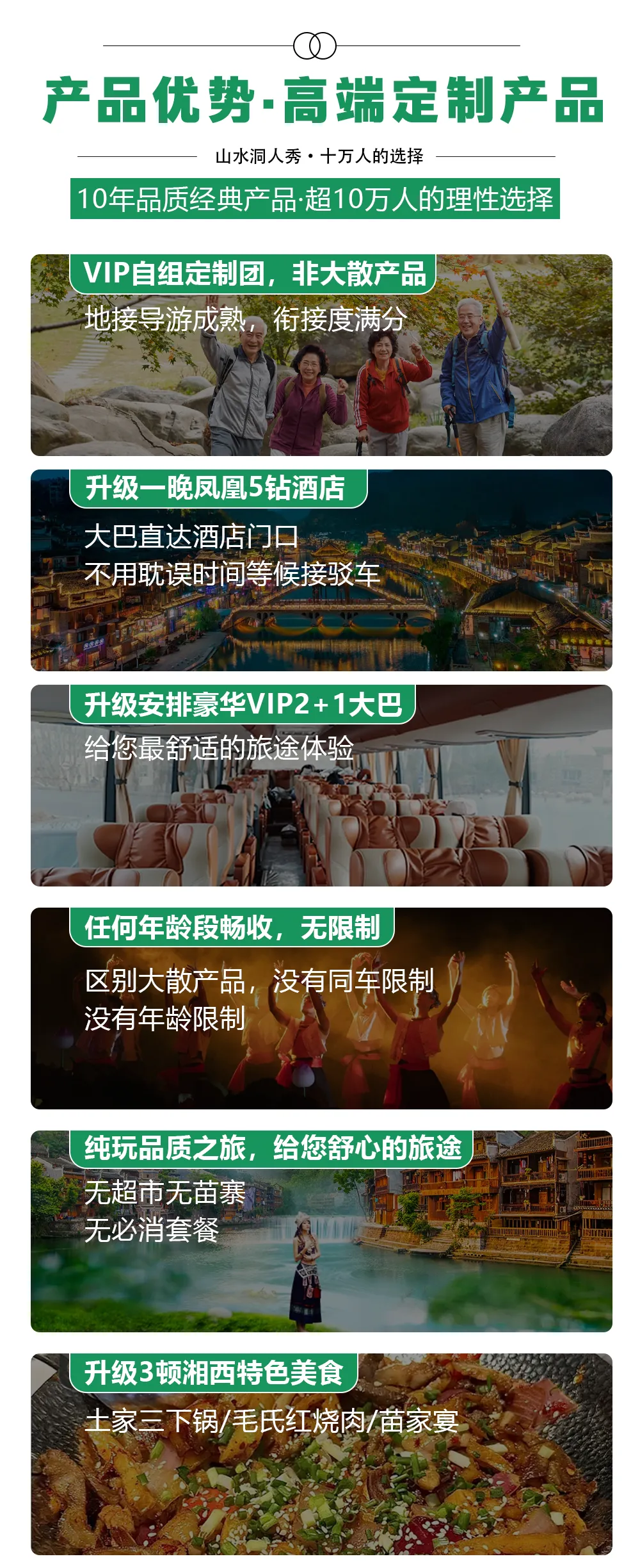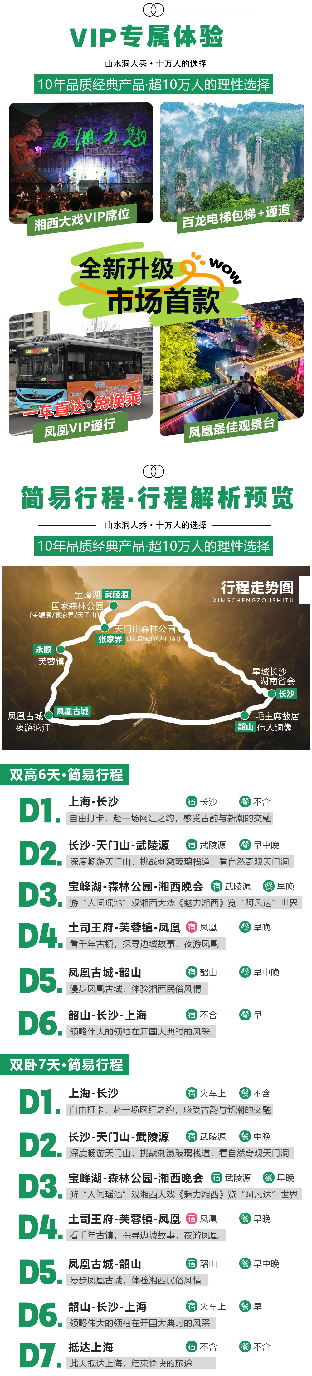【3-6月长沙+张家界+凤凰+韶山●纯玩双高6日/双卧7日●2599元起】核心景区+凤凰之眼+视觉盛宴+红色韶山,全程入住4-5钻酒店或高端客栈