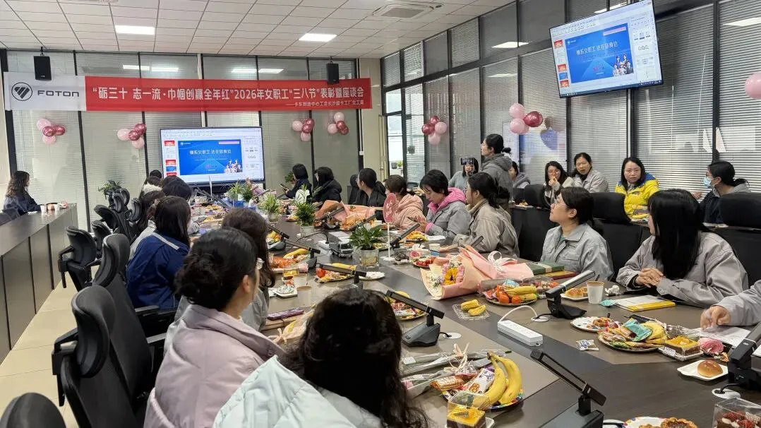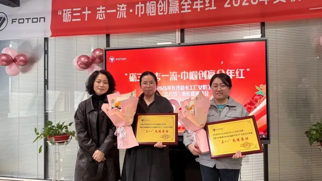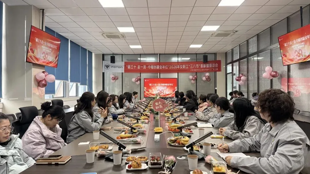 春风送暖,芳华绽放。为庆祝第116个“三八”国际劳动妇女节,深入倾听女职工心声诉求,切实关心大家工作生活中的实际所需,进一步增强女职工的凝聚力与归属感,引导全体女职工聚力攻坚、提质增效等核心任务,大力弘扬劳模精神、工匠精神,充分发挥先进女职工示范引领作用,3月5日上午,长沙超级卡车工厂工会开展2026年女职工“三八节”表彰暨座谈会。长沙厂区党委书记、卡车制造中心党委副书记黄娅,卡车制造中心长沙超级卡车工厂副厂长孙聚洪,女工委成员,各分会女工组长共计36名代表参会,会议由党群工作部(长沙物业运管中心)助理高级经理鲁芮主持。