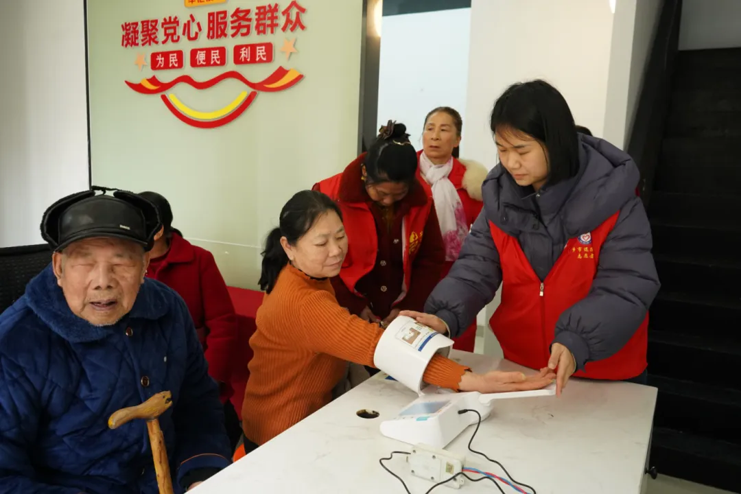 在义诊服务台前,志愿者耐心细致地为每一位前来咨询的居民测量血压,针对老年群体常见的高血压问题,志愿者不仅轻声叮嘱日常饮食注意事项,还结合个人情况提供健康建议,暖心的举动引得老人连连致谢。