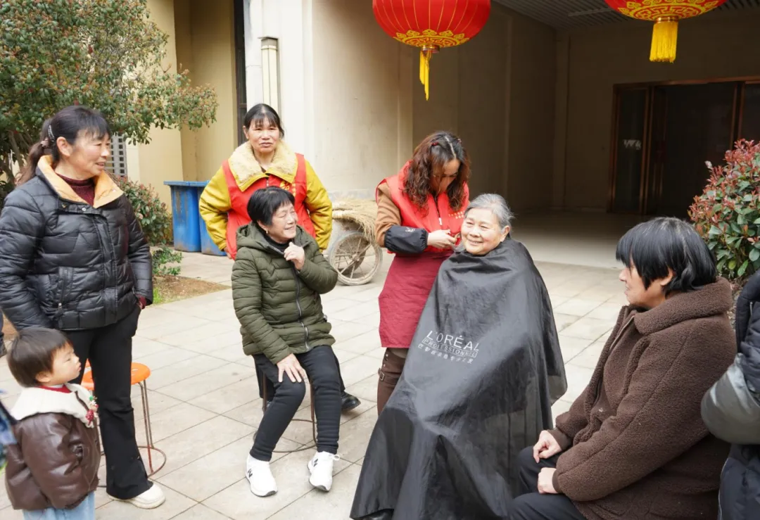 理发区域虽简朴却温馨,志愿者手法熟练、态度亲和,一边为老人系好围布,一边轻声询问发型需求。剪刀梳子上下翻飞,银发悄然落地,理完发的老人露出满意的笑容。志愿者还主动为行动不便的居民提供上门理发服务,在细微处体现尊老助老的深情。