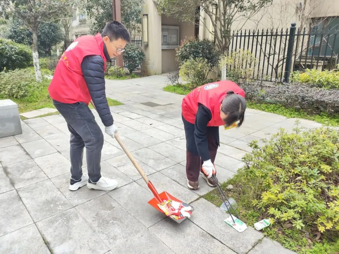 志愿者们手持扫帚、垃圾夹、垃圾袋,分组深入小区楼道、绿化带和公共区域。他们仔细清理草丛中的烟头、纸屑,并对卫生死角进行彻底清扫,小区环境在他们的努力下焕然一新。