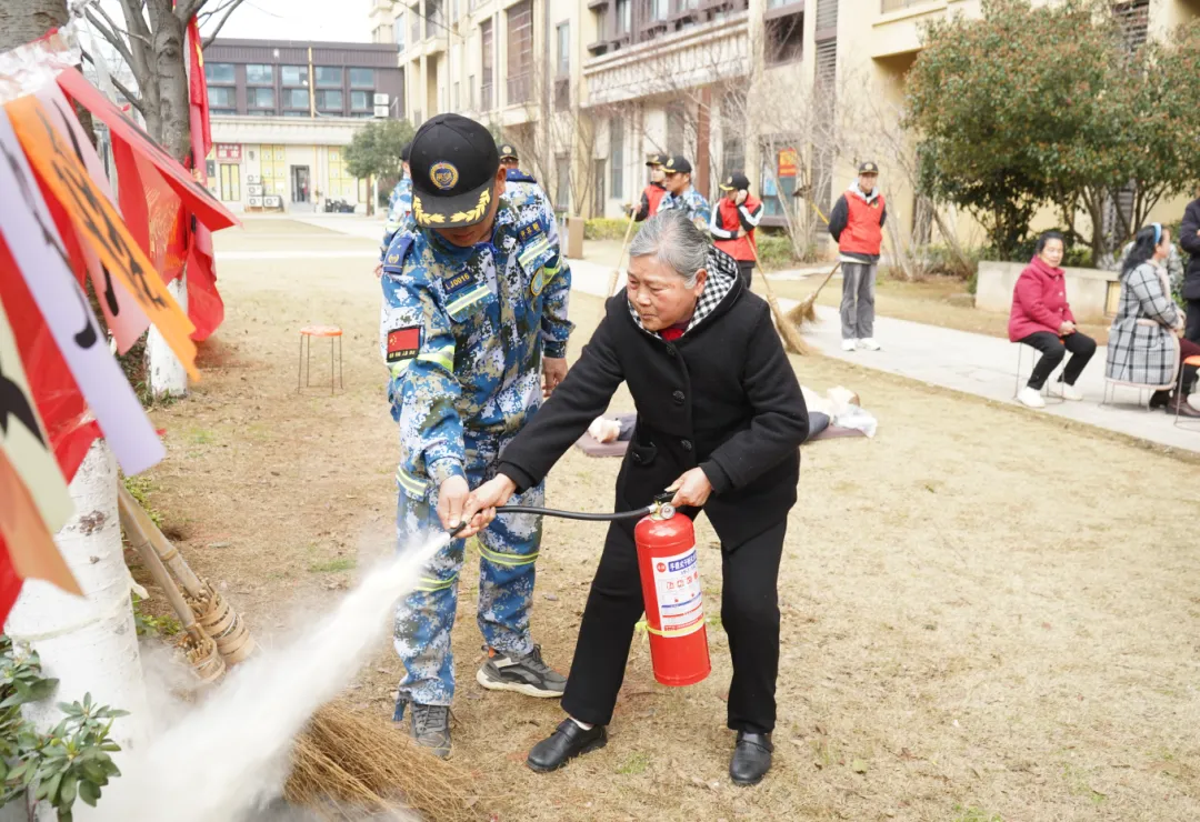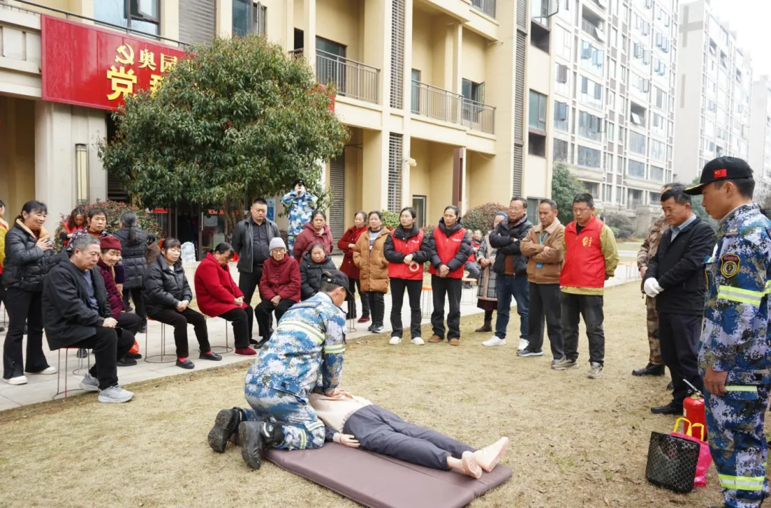 在小区前坪,志愿者通过实物演示、情景模拟等形式,开展消防安全、应急救护、防诈骗等实用知识宣讲,提升居民自我保护能力。现场模拟了灭火器使用、心肺复苏操作、溺水救援等环节,居民们踊跃参与实操体验。