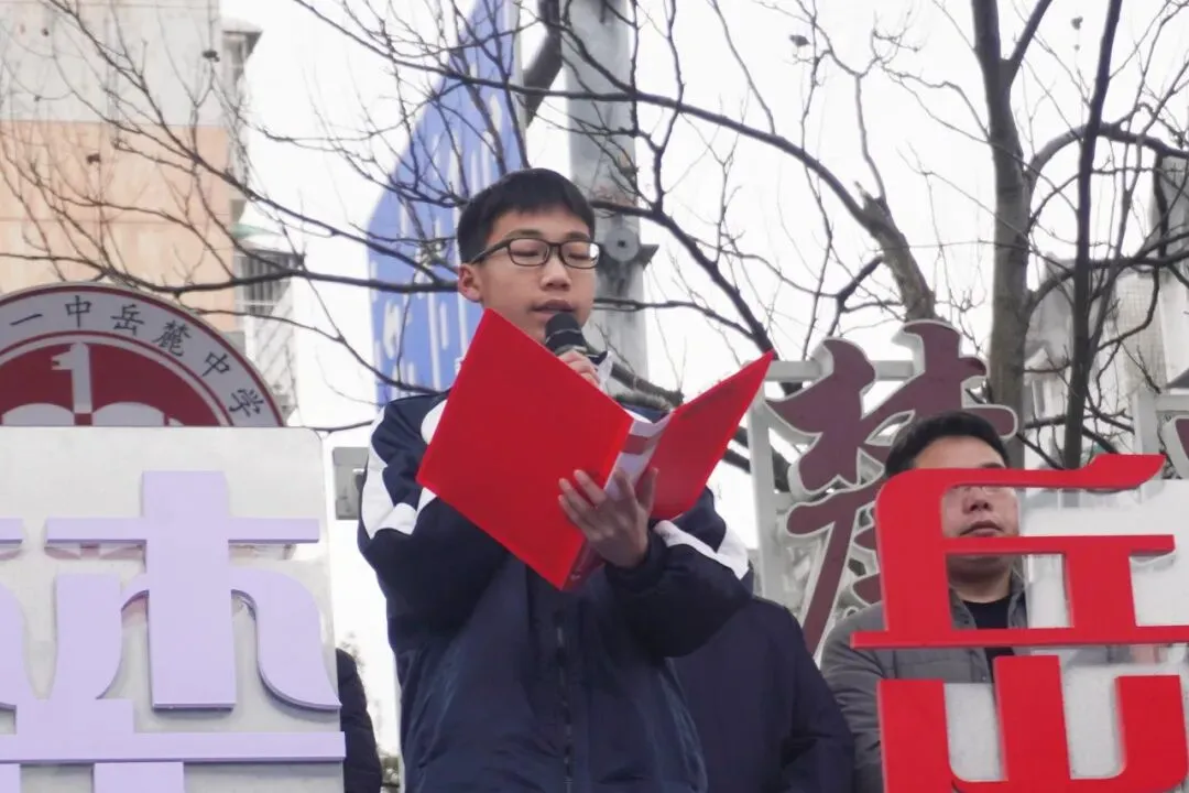 上学期“星耀章”个人数量第一名获得者、2302班刘晨同学作为学生代表发言。站在九年级冲刺的关键节点,他以真挚的情感和坚定的语气,回顾了在一中岳麓的成长点滴:“在这里,我们学会的不仅仅是解题的方法,更是思考的方式;我们收获的不仅仅是知识的积累,更是品格的塑造。”他号召全体同学在最后的冲刺阶段明确目标、脚踏实地,自律自主、锤炼品格,心怀感恩、勇担使命。