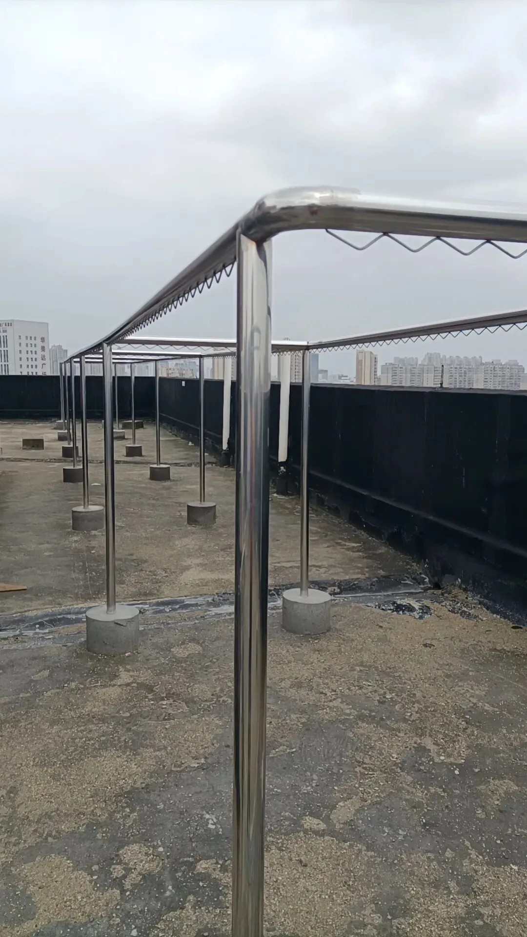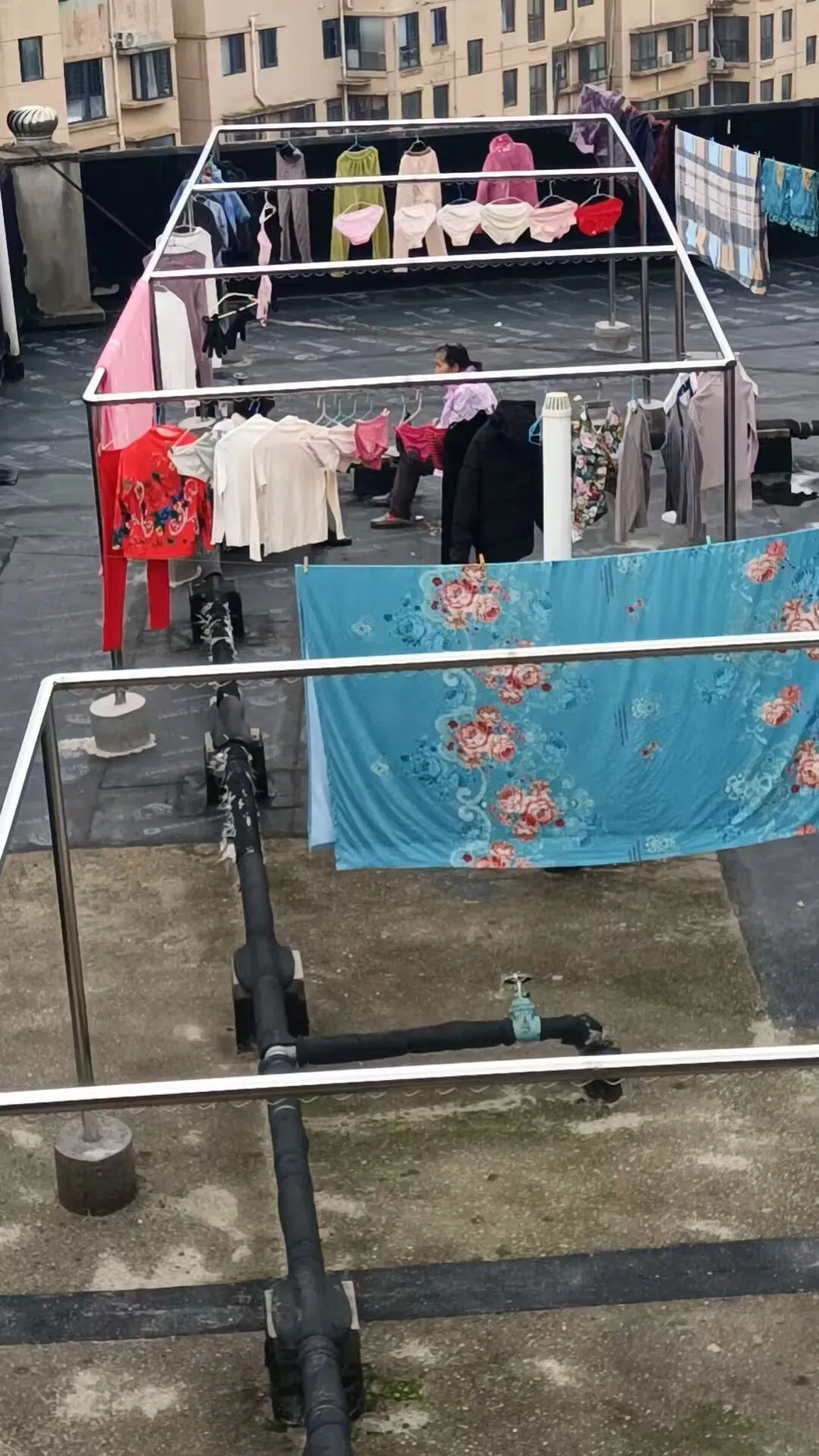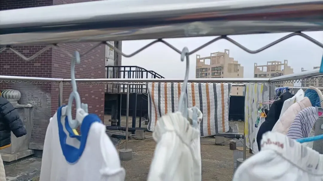 为切实解决这一长期困扰居民的难题,森林雅苑小区业主委员会积极作为,斥资十多万元对小区14栋的楼顶晒衣设备进行全面改造,该工程施工已接近尾声,大部分已交付使用。改造过程中,业主委员会负责人充分考虑不同户型特点,因地制宜进行合理布局,采用焊接不锈钢波纹丝的钢管搭建晒衣架。这种设计巧妙实用,居民晒衣时只需将衣架挂在波纹丝上,无需再用夹子或绳子固定,既不用担心衣物被风吹到一起,也不用害怕衣物掉落。晒被子时,也可根据被子大小随意晾晒,无需担忧架子不堪负重。