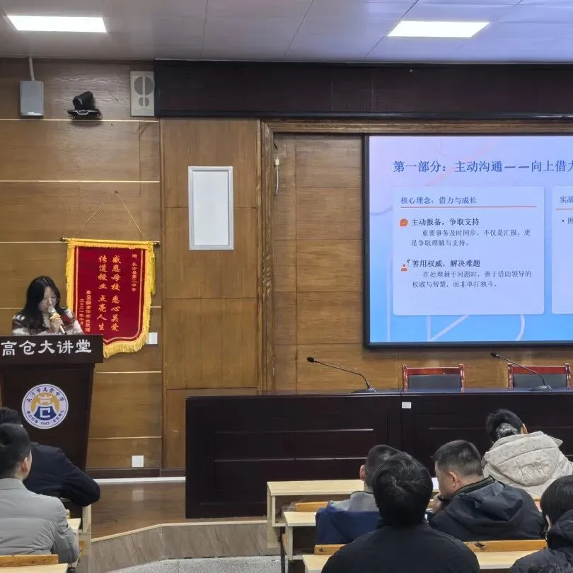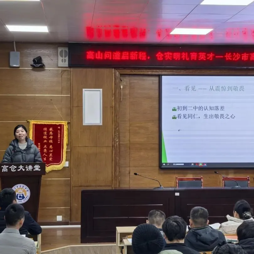 3月1日下午2点30分,长沙市高仓中学2026年春季开学教师业务培训会在学校多功能厅如期举行。本次培训以“高山问道启新程,仓实明礼育英才”为主题,全体教职工齐聚一堂,共赴这场思想与能力的双重盛宴。