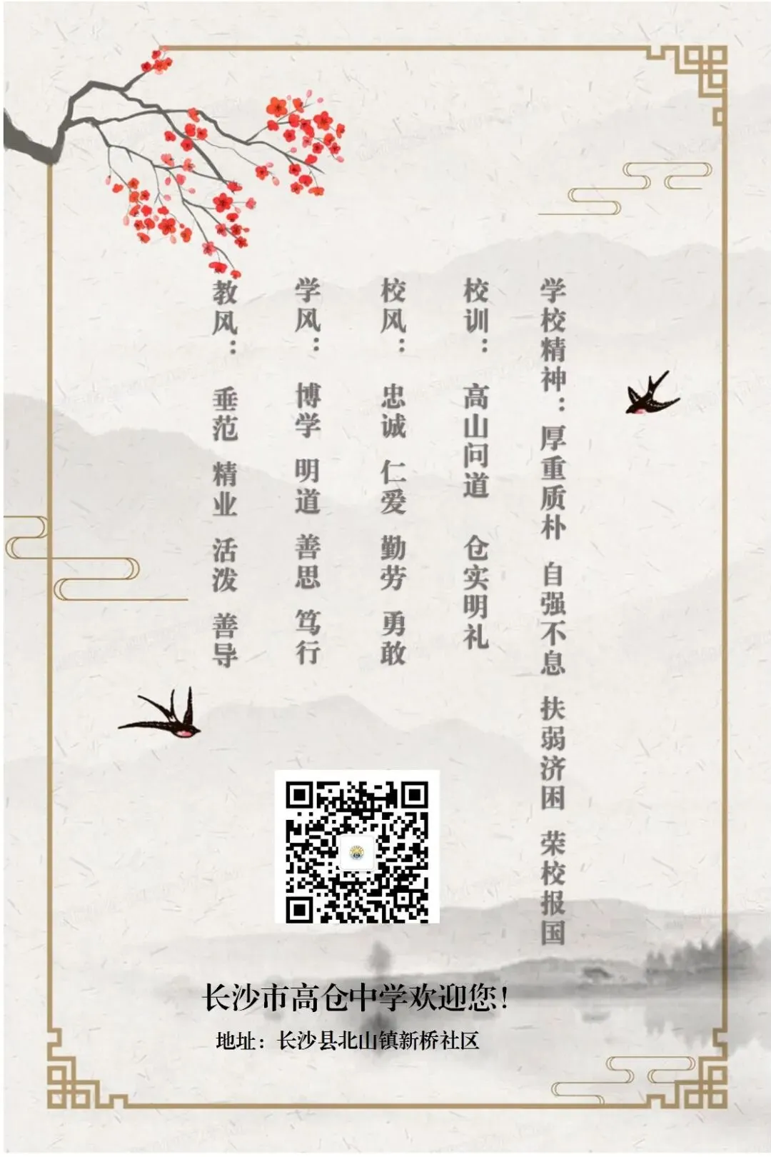 新的学期,新的起点,新的征程。长沙市高仓中学全体师生将以此次开学工作为契机,秉持“高山问道,仓实明礼”的校训精神,以更加饱满的热情、更加务实的作风、更加昂扬的斗志,在县域高中教育高质量发展的道路上奋勇前行!