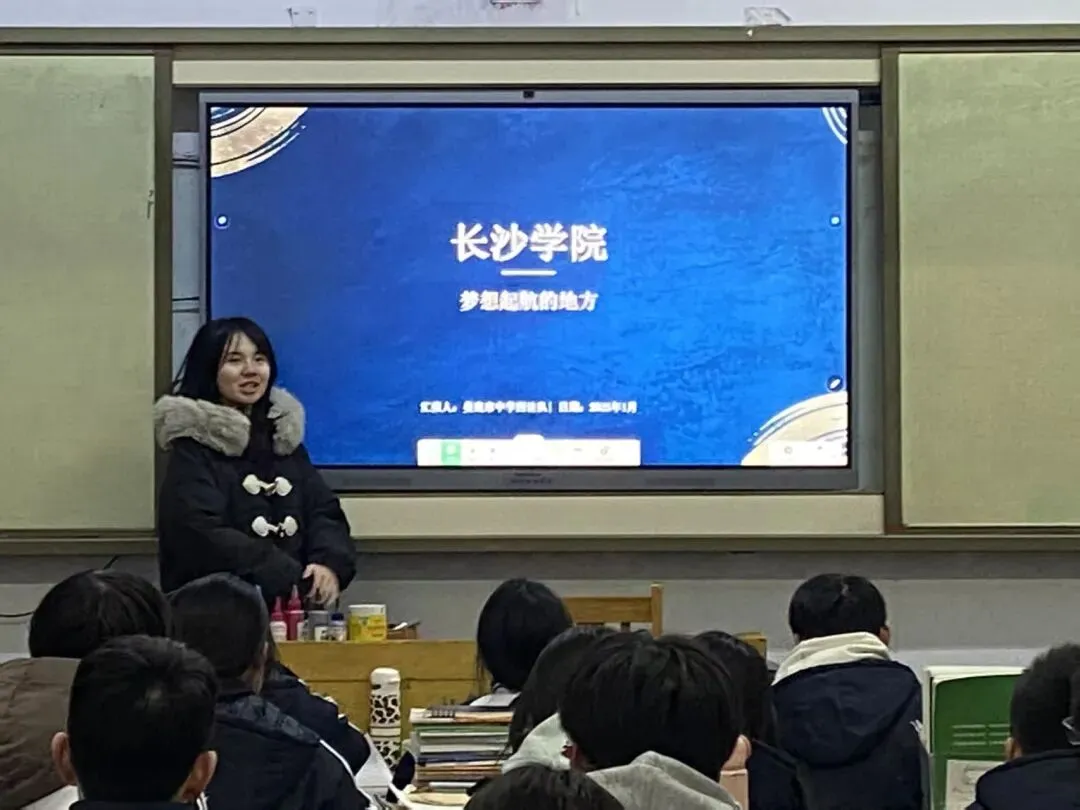 在各中学的宣讲交流环节,实践团队成员精心准备、认真分享,为学弟学妹们带来了一场场生动实用的交流活动。大家围绕长沙学院的办学特色、学科专业、师资力量、校园文化及就业升学等方面展开详细介绍,用真实的经历和直观的图片,让学弟学妹们对大学生活有了更清晰、更全面的认识。