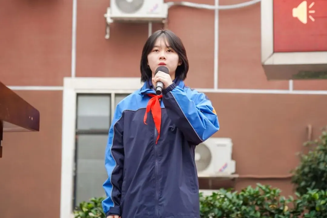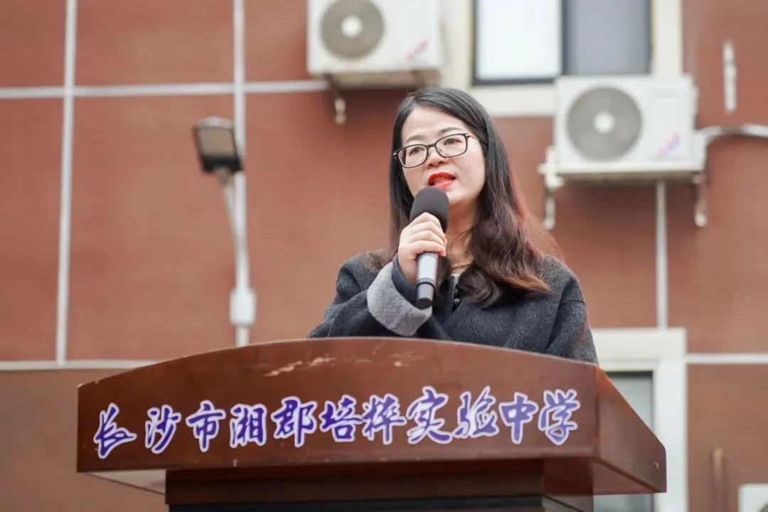 教师代表、初三年级组长曹育波老师的发言饱含深情,为三个年级的学子送上量身定制的寄语。她鼓励初一同学筑牢根基、涵养品行,在习惯中成就自我;嘱托初二同学坚守初心、笃行不怠,在沉淀中积蓄力量;面对初三学子,她更是给予最深情的鼓励:“你们从不是孤军奋战,老师是你们最坚实的后盾。愿你们以坚韧为铠甲,以信念为锋芒,百日磨砺终成剑,一朝试锋定夺魁!”话语间既有师者的殷切期望,更有家人般的温暖守护。