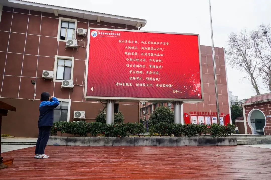 “今朝以校为荣,淬火砺剑;明日为国担当,擎旗奋进!”在校学生会主席雷苗同学的带领下,全体同学庄严宣誓。铿锵有力的誓言在校园久久回响,传递出培粹学子志存高远、勇担使命的坚定决心。