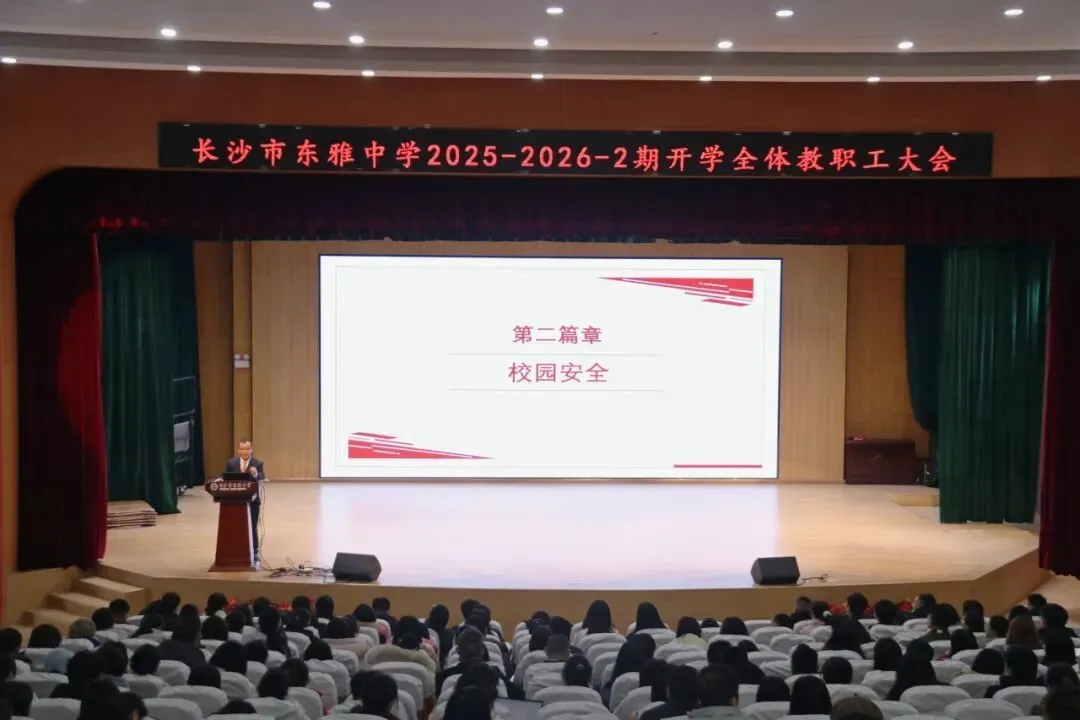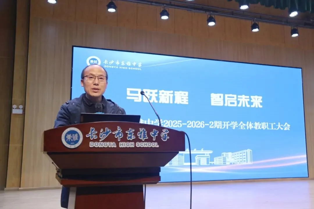 李衍宏校长发表《马跃新程,智启未来》主题开学工作讲话。他结合全国基础教育重点工作部署会等会议精神,呼吁全体教师全面落实学校“十五五”发展规划,持续提升学校治理能力与治理水平,深化“润雅优质课堂”建设全面提升教育教学质量,扎实推进“三声校园建设”,成立专班全面落实“健康第一”理念。李校长强调,新学期要重点实施“笑一笑、夸一夸、问一问、讲一讲”四大育人工程,老师和学生一起做更好的自己,推进学校高质量发展。