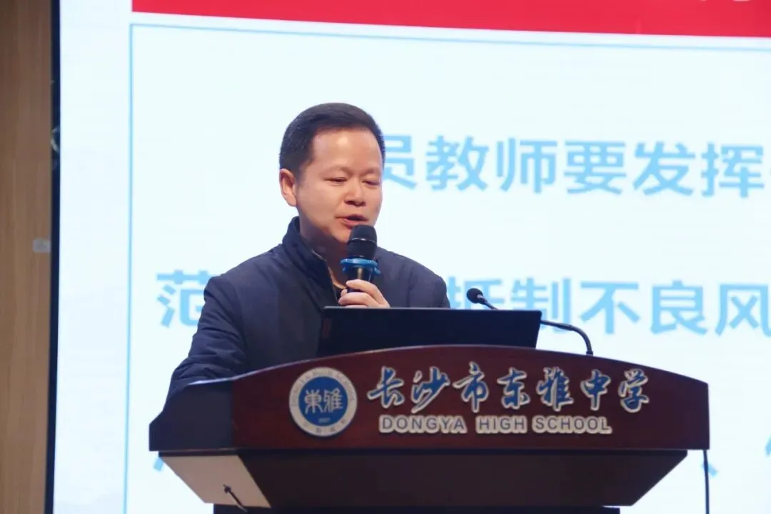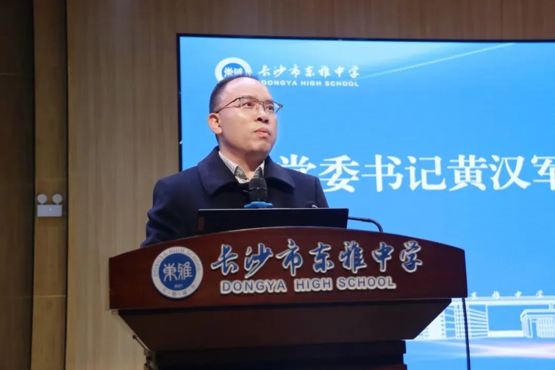 黄汉军书记发表总结讲话,回顾一年来各项教育教学成果,高度认可了全体教职工共同努力撷取的各项荣誉与成果,并以“路虽远,行则将至;事虽难,做则必成”鼓励全体东雅人赓续奋进,共同谱写长沙市东雅中学高质量发展的新篇章。