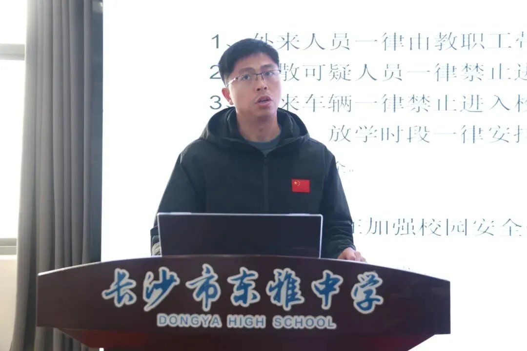 李衍宏校长就新学期校园安全工作进行了部署。他强调,新学期要坚持“一个制度、一个内容、一个流程”的原则落实校园安全工作,全体教职工牢固树立“首见责任制”意识、“成长性安全观”意识,以“诚生万物”的态度在教师岗位上发光发热,守护同学们的学习、生活。