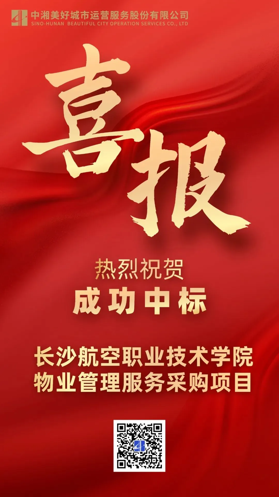 新春启新程,捷报传佳音!开年之际,湖南建投中湘美好凭借强大的综合服务实力、成熟的物业服务经验与良好的市场口碑,中标长沙航空职业技术学院物业管理服务采购项目,以专业实力开启校园物业服务新合作!