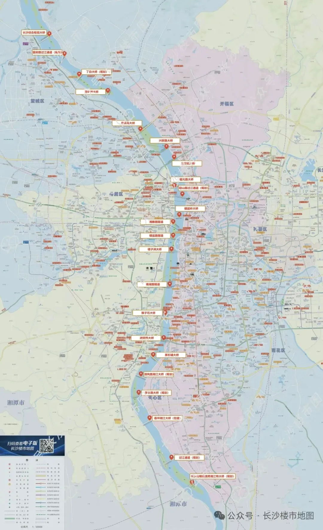 截至目前,长沙已建及在建的过江通道已达16条,由南至北依次排布: