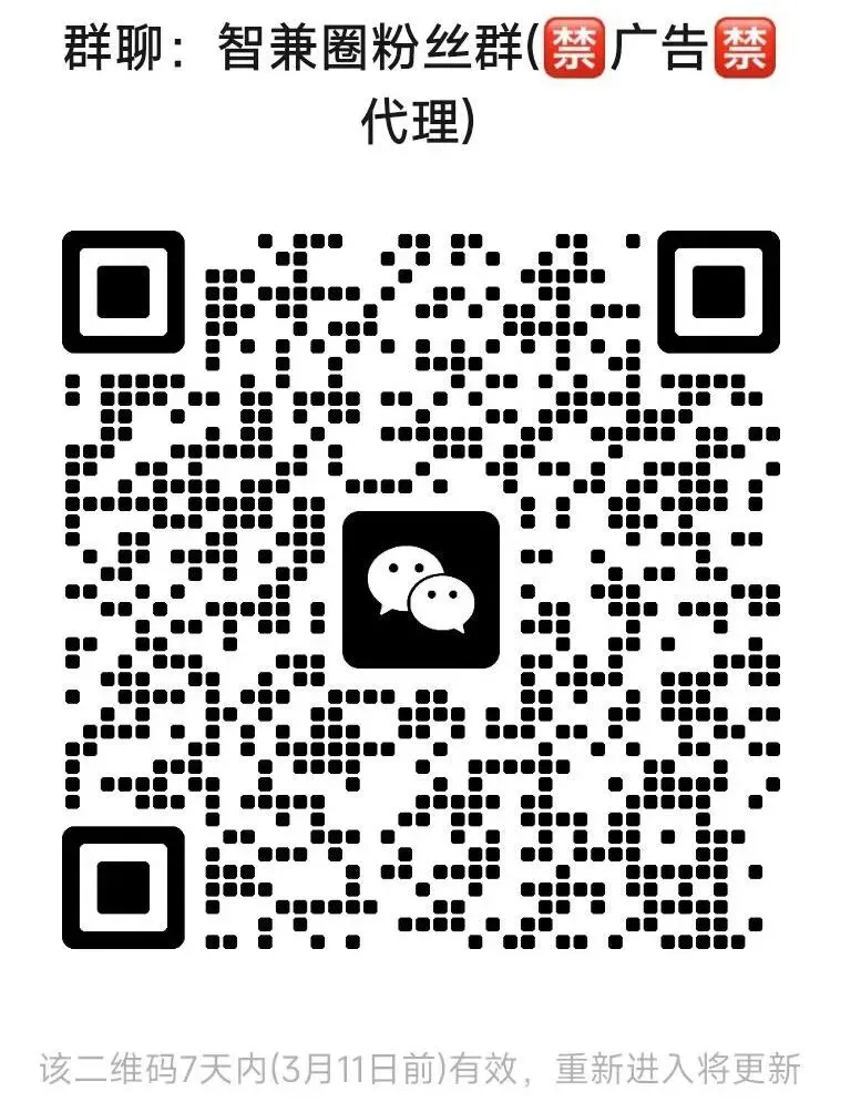请关注“智兼圈”公众号,每天发布日结/全职招聘信息
