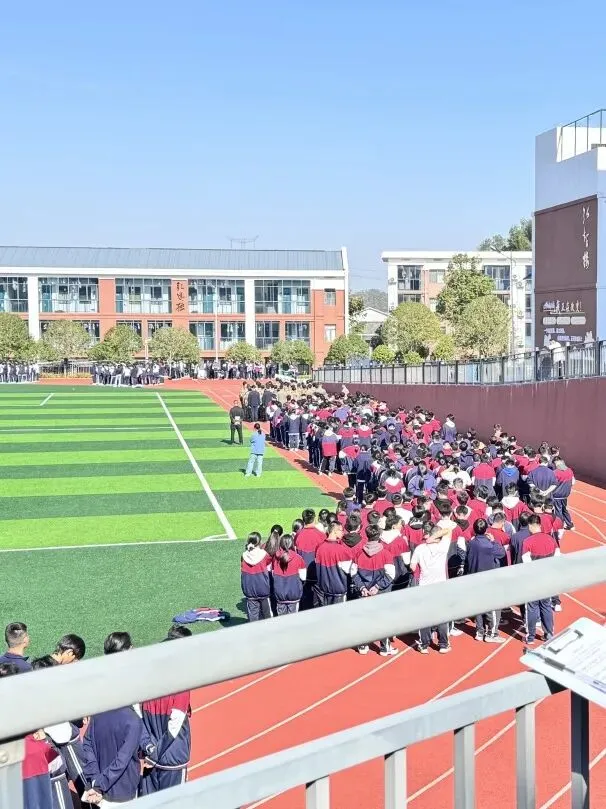 晨光刚洒进校园,早操铃声就准时“喊”大家集合啦!同学们身着整齐校服,迈着铿锵有力的步子奔跑,嘹亮口号直接响彻校园上空;课间操时间,大家动作整齐划一,精神饱满,舒展身心的同时,也攒足了奋进的力量,少年意气直接拉满。