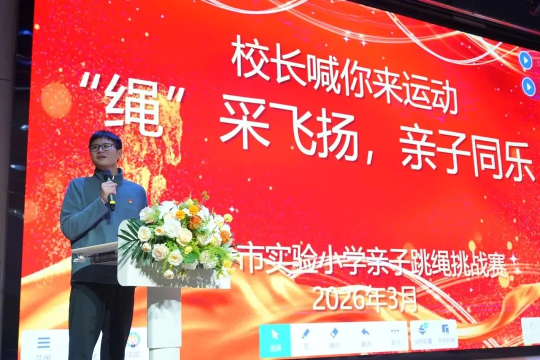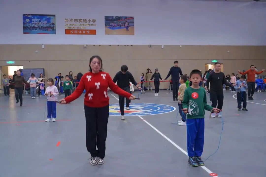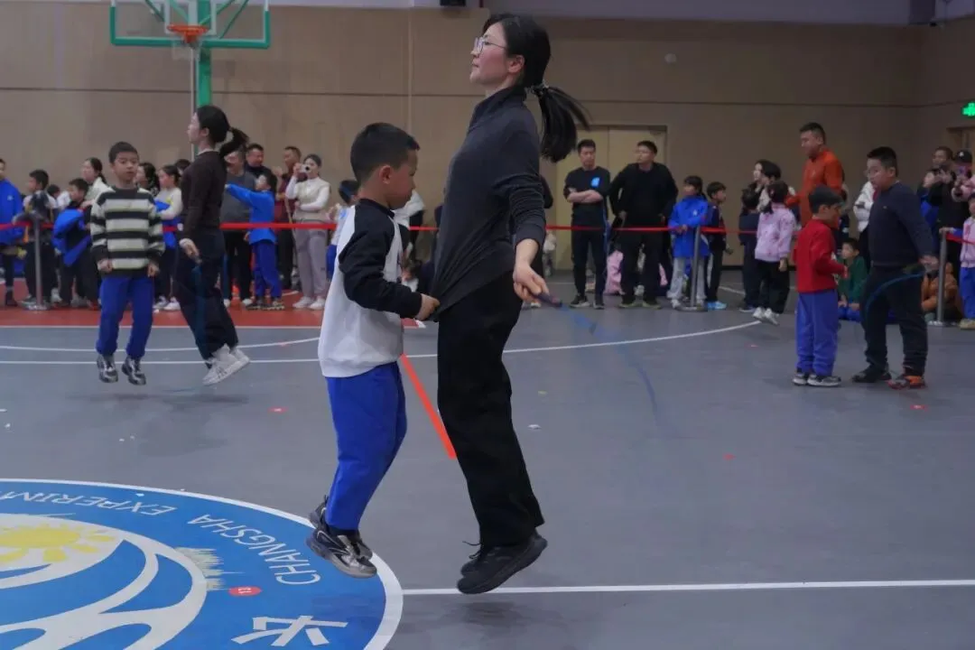 3月4日下午,阳光正好,微风不燥。长沙市实验小学的操场上欢呼声、跳绳破空声此起彼伏,备受期待的“校长喊你来运动”线下亲子跳绳赛在这里火热开启。作为寒假云赛的线下延续,本次活动以“‘绳’采飞扬,亲子同乐”为主题,吸引了近300组家庭走进校园,用跃动的身影和灿烂的笑脸,共同绘就了一幅活力满满的春日运动画卷。