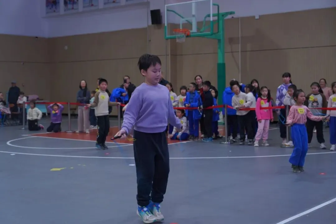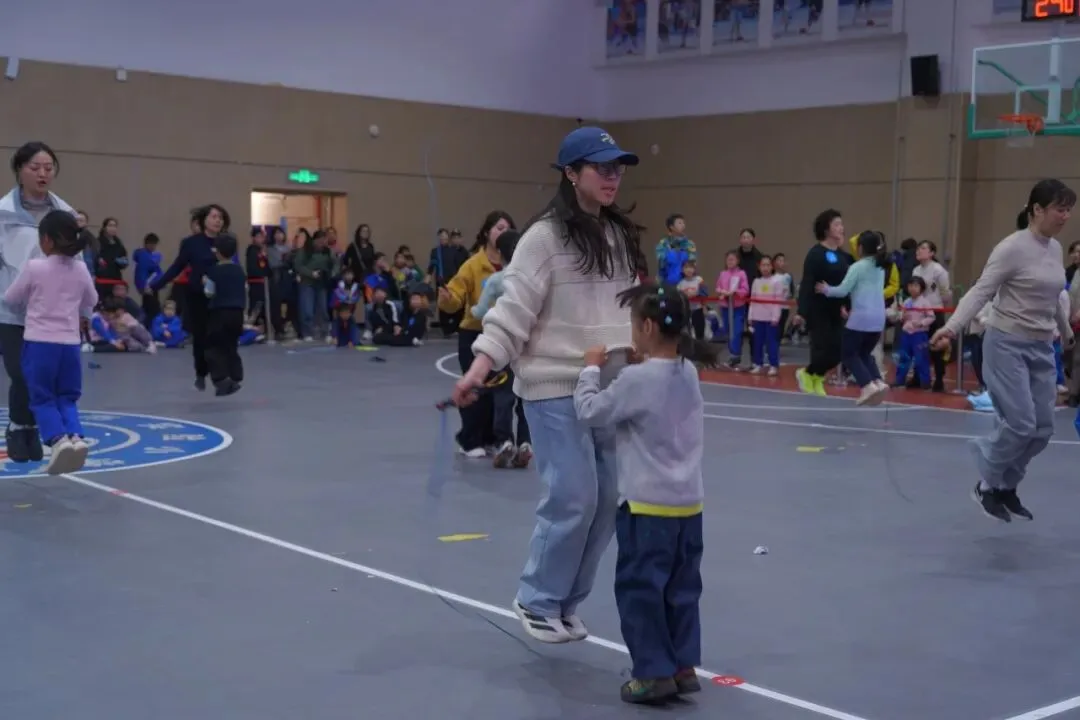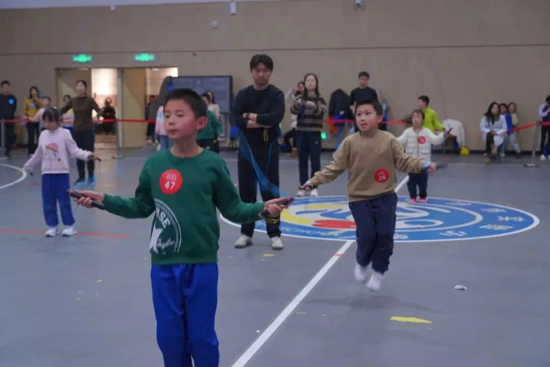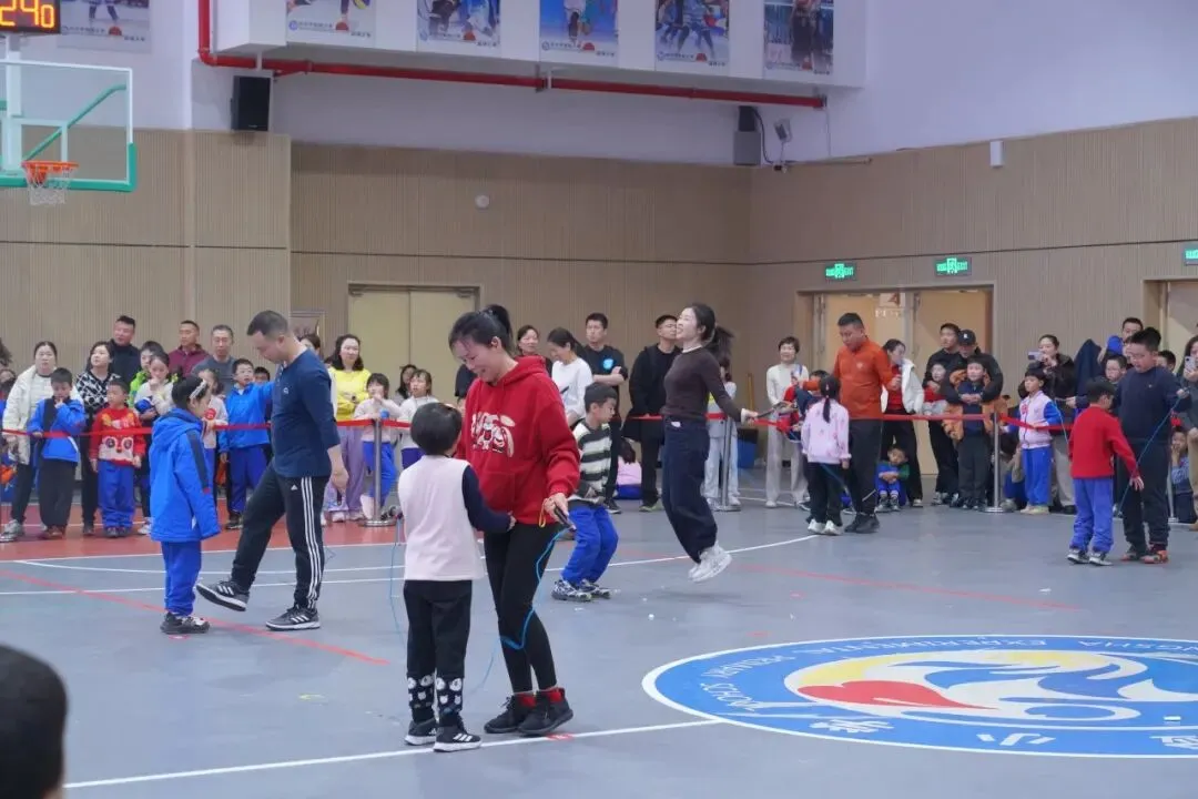 比赛环节精彩纷呈,高潮迭起。在亲子一带一跳区域,家长摇绳,孩子跟随节奏同步起跳,默契的配合引来阵阵喝彩;亲子接力跳绳则考验着家长与孩子的衔接能力,30秒的交替跳跃,既是速度的比拼,更是亲情的传递。随后的“我是跳绳王”单人挑战赛中,小选手们个个卯足了劲,彩绳飞舞,脚尖点地,一分钟内不断挑战着自己的极限。