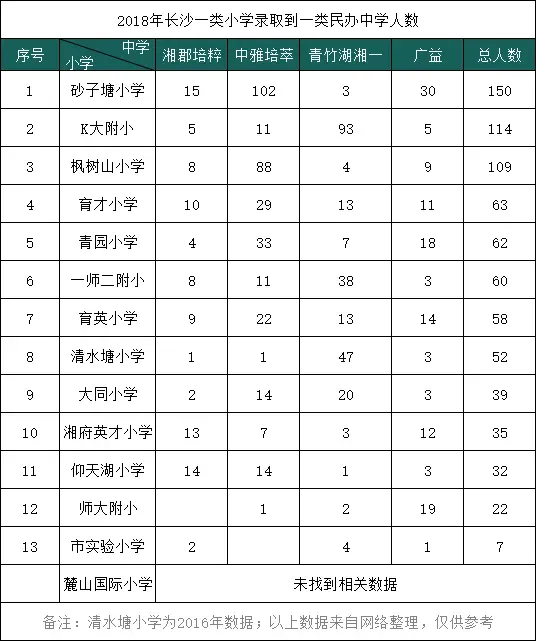在2019年前民办可以择优的年代,砂子塘小学和枫树山小学考入长沙一类民办的学生人数,一直稳居长沙小学前三甲(肯定有人会杠,说这些数据太古老,问题是2019年以后,长沙民办学校就不能公开择优了,再也没有以前那么完整的小升初数据了)。